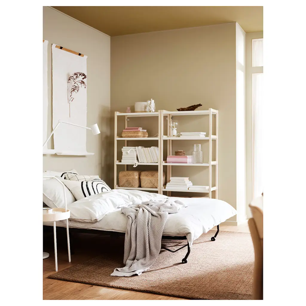 LYCKSELE LÖVÅS Sleeper sofa - Ransta natural. A simple, firm foam mattress for use every night. Extra covers to alternate, which means it's easy to give both your sofa and room a new look. Easily converts into a bed big enough for two. Complies with California TB117-2013 flammability requirements.