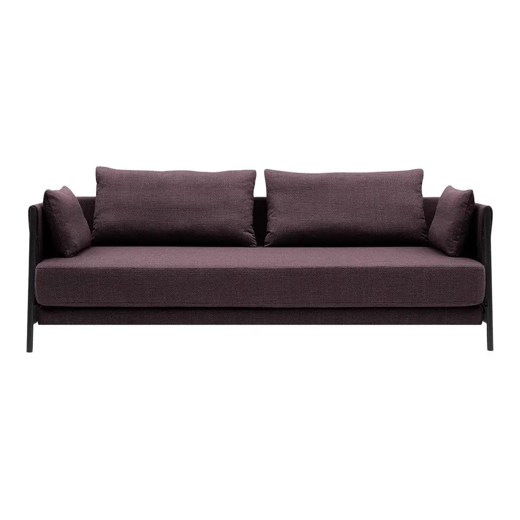 This is a young, uncomplicated sofa bed with a casual feeling for sitting, chilling and sleeping. The sofa exudes a casual elegance with its pure fabric-covered steel armrests and the many back cushions with pointed seams. The fabric-covered steel armrests give it its identity and uniqueness. The seat depth of the MADISON sofa invites you to lounge and chill. The pillows, which can be freely arranged, are sometimes used as an armrest, for lumbar support or as a backrest, and there is plenty of space for your personal favorite pillow too. The upper seat cushion can easily be folded forward, and the bed is created.