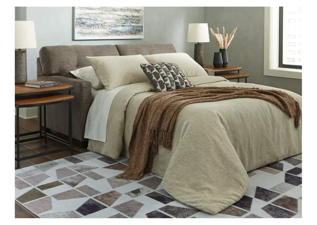 Reliable comfort, reimagined. Suitable for a variety of spaces, the Mahoney full sofa sleeper invites you to say hello to approachable, everyday style. It expertly balances classic details, like a tufted back, with a contemporary structure. Satisfyingly soft, multi-hued upholstery rounds out the relaxed feel of this smartly designed piece. The integrated mattress offers an extra dose of function. Weight 186.000 lbs. (83.7kgs.)