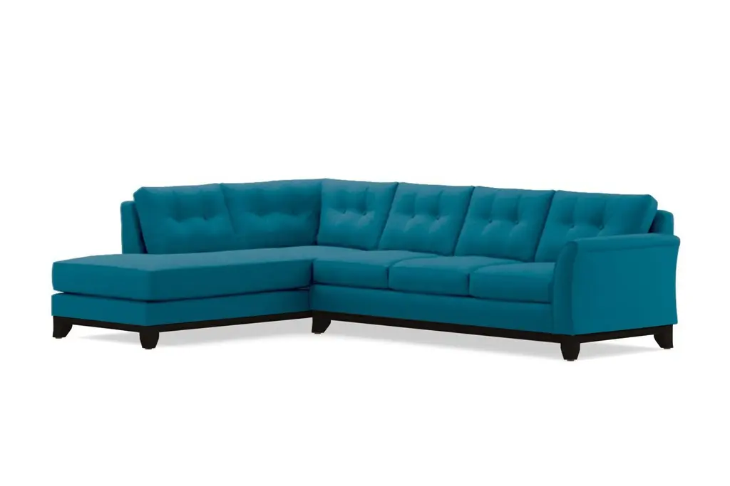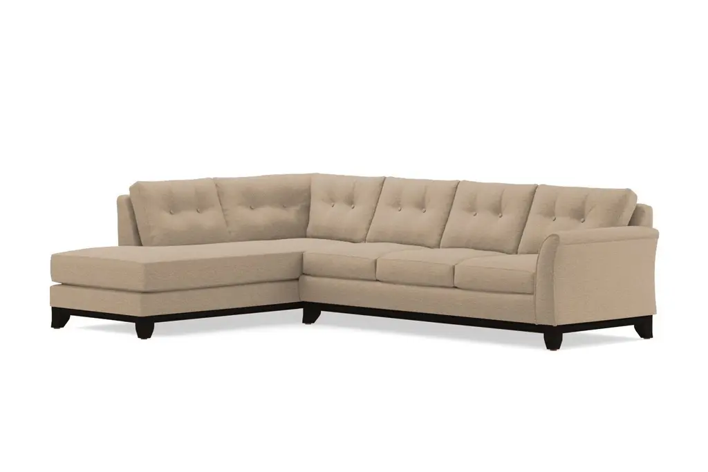 Need to button up the design of your room? Look no further than the Marco 2 Piece Sleeper Sectional Sofa. The Marco is a sleeper sectional with a formal, refined profile, a stunning wood base, and a winged arm that's perfect for supporting your head while you read your favorite book. But don't let the tufted accents deceive you - the Marco is also an extremely comfortable sofa that you won't want to leave once you sit down. Seriously, this is your only warning. It's not easy to have it all, but the Marco manages to pull together all the best attributes of every sofa style: it's comfortable, it's versatile, it has sharp button tufted accents, it's a sectional, and it's a sleeper sofa. What more could you possible want? The Marco 2 Piece Sleeper Sectional Sofa features a Queen Size mattress, detachable and flippable cushions, and a long comfy chaise. This versatile, tufted couch is also built to order in our downtown Los Angeles factory (made in the USA!) and it can be upholstered in any of Apt2B's fantastic line of kid friendly and pet friendly fabrics. The Marco is truly the point where form meets function.