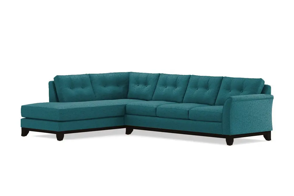 Need to button up the design of your room? Look no further than the Marco 2 Piece Sleeper Sectional Sofa. The Marco is a sleeper sectional with a formal, refined profile, a stunning wood base, and a winged arm that's perfect for supporting your head while you read your favorite book. But don't let the tufted accents deceive you - the Marco is also an extremely comfortable sofa that you won't want to leave once you sit down. Seriously, this is your only warning. It's not easy to have it all, but the Marco manages to pull together all the best attributes of every sofa style: it's comfortable, it's versatile, it has sharp button tufted accents, it's a sectional, and it's a sleeper sofa. What more could you possible want? The Marco 2 Piece Sleeper Sectional Sofa features a Queen Size mattress, detachable and flippable cushions, and a long comfy chaise. This versatile, tufted couch is also built to order in our downtown Los Angeles factory (made in the USA!) and it can be upholstered in any of Apt2B's fantastic line of kid friendly and pet friendly fabrics. The Marco is truly the point where form meets function.