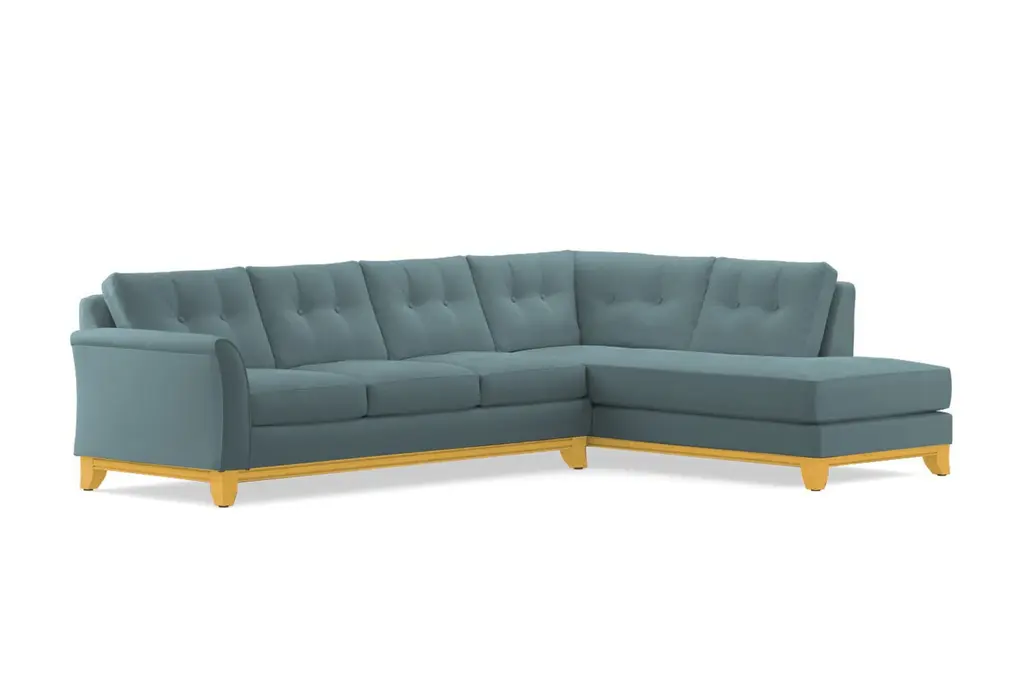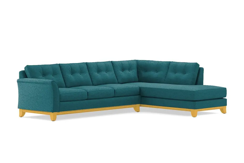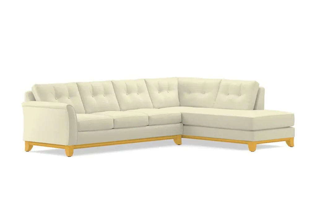 Need to button up the design of your room? Look no further than the Marco 2 Piece Sleeper Sectional Sofa. The Marco is a sleeper sectional with a formal, refined profile, a stunning wood base, and a winged arm that's perfect for supporting your head while you read your favorite book. But don't let the tufted accents deceive you - the Marco is also an extremely comfortable sofa that you won't want to leave once you sit down. Seriously, this is your only warning. It's not easy to have it all, but the Marco manages to pull together all the best attributes of every sofa style: it's comfortable, it's versatile, it has sharp button tufted accents, it's a sectional, and it's a sleeper sofa. What more could you possible want? The Marco 2 Piece Sleeper Sectional Sofa features a Queen Size mattress, detachable and flippable cushions, and a long comfy chaise. This versatile, tufted couch is also built to order in our downtown Los Angeles factory (made in the USA!) and it can be upholstered in any of Apt2B's fantastic line of kid friendly and pet friendly fabrics. The Marco is truly the point where form meets function.