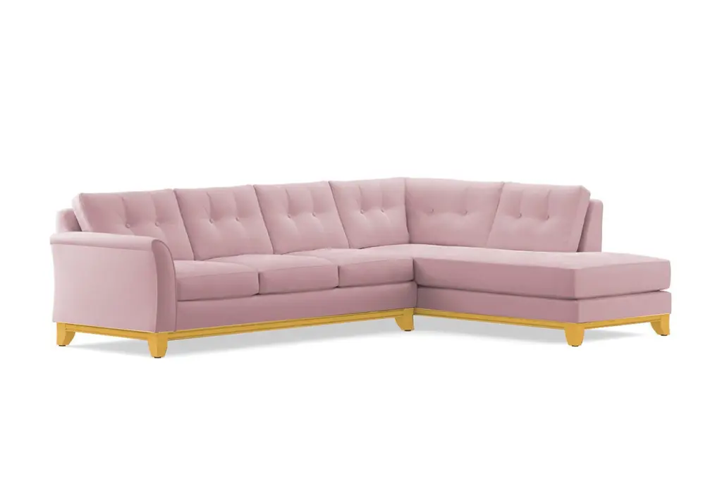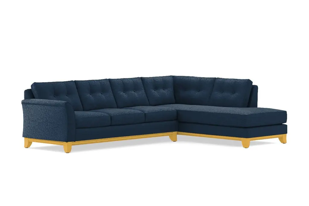 Need to button up the design of your room? Look no further than the Marco 2 Piece Sleeper Sectional Sofa. The Marco is a sleeper sectional with a formal, refined profile, a stunning wood base, and a winged arm that's perfect for supporting your head while you read your favorite book. But don't let the tufted accents deceive you - the Marco is also an extremely comfortable sofa that you won't want to leave once you sit down. Seriously, this is your only warning. It's not easy to have it all, but the Marco manages to pull together all the best attributes of every sofa style: it's comfortable, it's versatile, it has sharp button tufted accents, it's a sectional, and it's a sleeper sofa. What more could you possible want? The Marco 2 Piece Sleeper Sectional Sofa features a Queen Size mattress, detachable and flippable cushions, and a long comfy chaise. This versatile, tufted couch is also built to order in our downtown Los Angeles factory (made in the USA!) and it can be upholstered in any of Apt2B's fantastic line of kid friendly and pet friendly fabrics. The Marco is truly the point where form meets function.