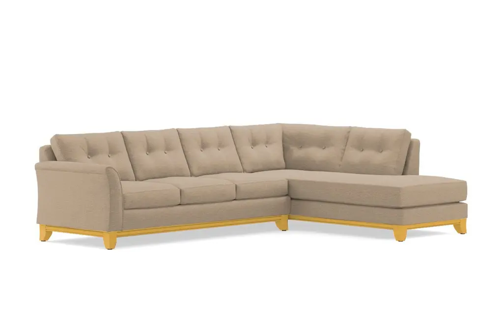 Need to button up the design of your room? Look no further than the Marco 2 Piece Sleeper Sectional Sofa. The Marco is a sleeper sectional with a formal, refined profile, a stunning wood base, and a winged arm that's perfect for supporting your head while you read your favorite book. But don't let the tufted accents deceive you - the Marco is also an extremely comfortable sofa that you won't want to leave once you sit down. Seriously, this is your only warning. It's not easy to have it all, but the Marco manages to pull together all the best attributes of every sofa style: it's comfortable, it's versatile, it has sharp button tufted accents, it's a sectional, and it's a sleeper sofa. What more could you possible want? The Marco 2 Piece Sleeper Sectional Sofa features a Queen Size mattress, detachable and flippable cushions, and a long comfy chaise. This versatile, tufted couch is also built to order in our downtown Los Angeles factory (made in the USA!) and it can be upholstered in any of Apt2B's fantastic line of kid friendly and pet friendly fabrics. The Marco is truly the point where form meets function.