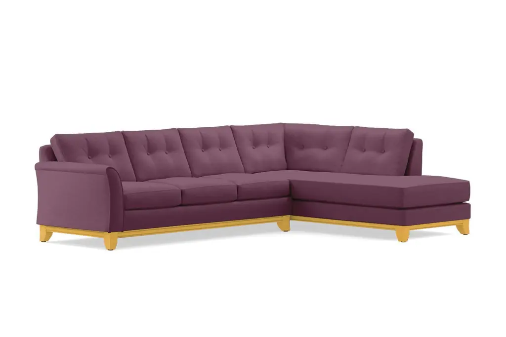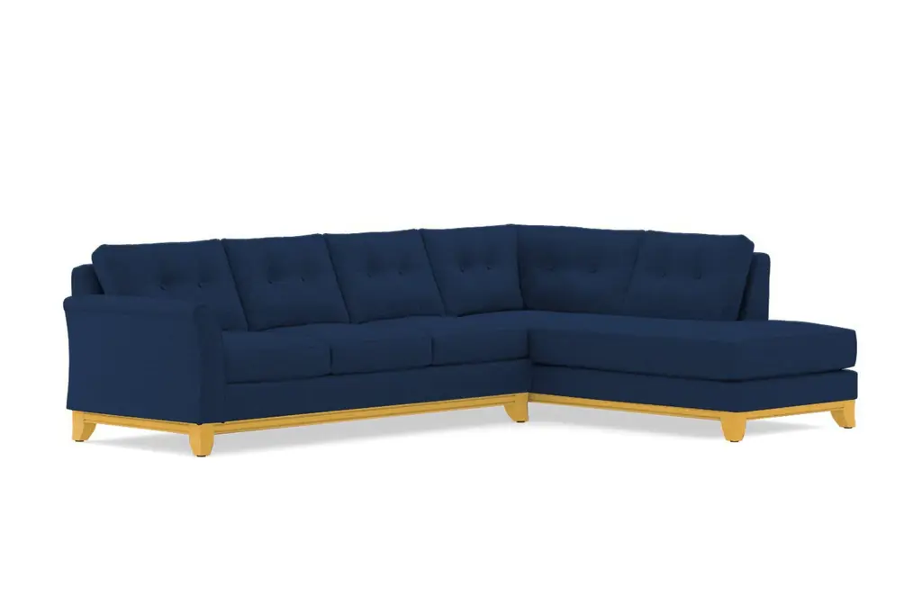 Need to button up the design of your room? Look no further than the Marco 2 Piece Sleeper Sectional Sofa. The Marco is a sleeper sectional with a formal, refined profile, a stunning wood base, and a winged arm that's perfect for supporting your head while you read your favorite book. But don't let the tufted accents deceive you - the Marco is also an extremely comfortable sofa that you won't want to leave once you sit down. Seriously, this is your only warning. It's not easy to have it all, but the Marco manages to pull together all the best attributes of every sofa style: it's comfortable, it's versatile, it has sharp button tufted accents, it's a sectional, and it's a sleeper sofa. What more could you possible want? The Marco 2 Piece Sleeper Sectional Sofa features a Queen Size mattress, detachable and flippable cushions, and a long comfy chaise. This versatile, tufted couch is also built to order in our downtown Los Angeles factory (made in the USA!) and it can be upholstered in any of Apt2B's fantastic line of kid friendly and pet friendly fabrics. The Marco is truly the point where form meets function.