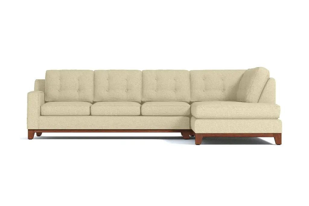 Need to button up the design of your room? Look no further than the Marco 2-Piece Sleeper Sectional Sofa. The Marco is a sleeper sectional with a formal, refined profile, a stunning wood base and a winged arm that's perfect for supporting your head while you read your favorite book. But don't let the tufted accents deceive you; the Marco is also an extremely comfortable sofa that you won't want to leave once you sit down. Seriously, this is your only warning. The Marco provides plenty of space to entertain while also being the perfect sofa for lounging around and watching your favorite movies or hosting a family game night. It's not easy to have it all, but the Marco manages to pull together all the best attributes of every sofa style: it's comfortable, it's versatile, it has sharp button tufted accents, it's a sectional and it's a sleeper sofa. What more could you possibly want? The Marco 2-Piece Sectional Sleeper Sofa features a queen size mattress, detachable and flippable cushions (because #messeshappen) and a long comfy chaise. This versatile, tufted couch is also built to order in our downtown Los Angeles factory (made in the USA!) and it can be upholstered in any of Apt2B's fantastic line of kid-friendly and pet-friendly fabrics. With its versatility for entertaining, lounging and hosting overnight guests, the Marco is truly the point where form meets function. Find the Marco and other stylish and durable sleeper sectionals for your home when you shop online at Apt2B. In addition to this popular style, we also offer leather pull-out sectionals, velvet sectional sleeper sofas and more.