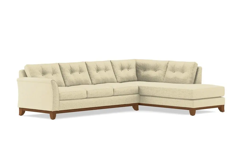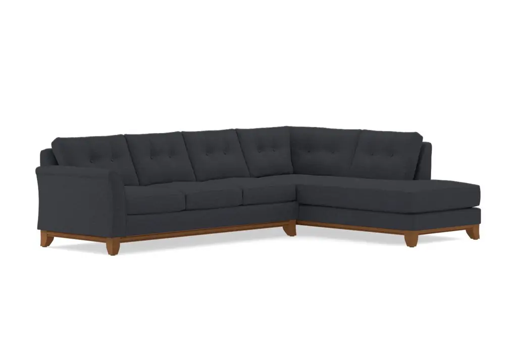 Need to button up the design of your room? Look no further than the Marco 2-Piece Sleeper Sectional Sofa. The Marco is a sleeper sectional with a formal, refined profile, a stunning wood base and a winged arm that's perfect for supporting your head while you read your favorite book. But don't let the tufted accents deceive you; the Marco is also an extremely comfortable sofa that you won't want to leave once you sit down. Seriously, this is your only warning. The Marco provides plenty of space to entertain while also being the perfect sofa for lounging around and watching your favorite movies or hosting a family game night. It's not easy to have it all, but the Marco manages to pull together all the best attributes of every sofa style: it's comfortable, it's versatile, it has sharp button tufted accents, it's a sectional and it's a sleeper sofa. What more could you possibly want? The Marco 2-Piece Sectional Sleeper Sofa features a queen size mattress, detachable and flippable cushions (because #messeshappen) and a long comfy chaise. This versatile, tufted couch is also built to order in our downtown Los Angeles factory (made in the USA!) and it can be upholstered in any of Apt2B's fantastic line of kid-friendly and pet-friendly fabrics. With its versatility for entertaining, lounging and hosting overnight guests, the Marco is truly the point where form meets function. Find the Marco and other stylish and durable sleeper sectionals for your home when you shop online at Apt2B. In addition to this popular style, we also offer leather pull-out sectionals, velvet sectional sleeper sofas and more.