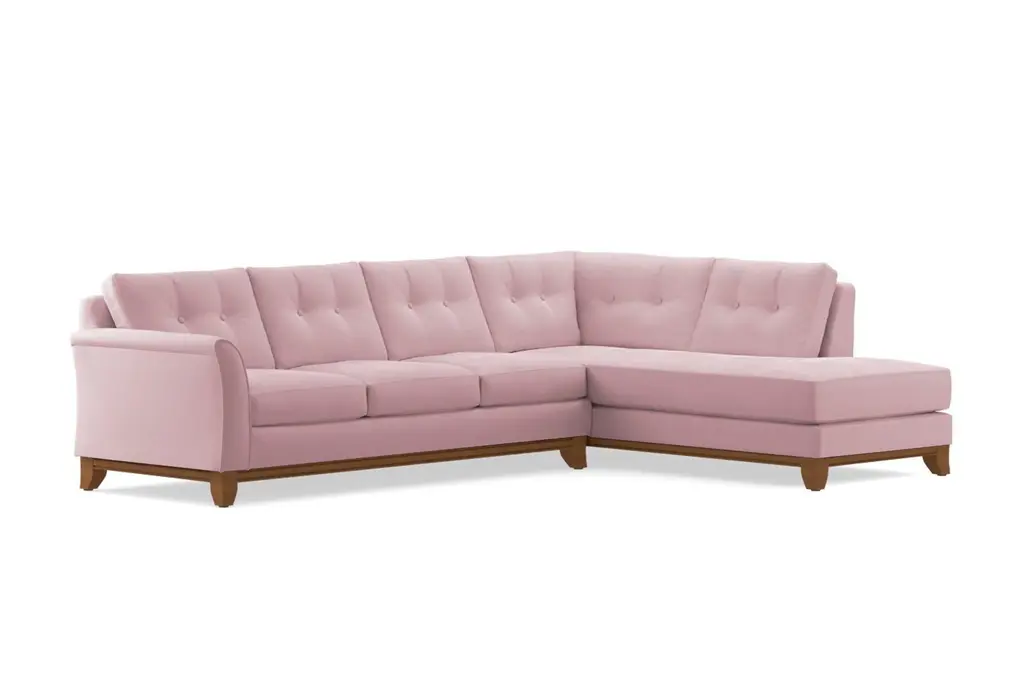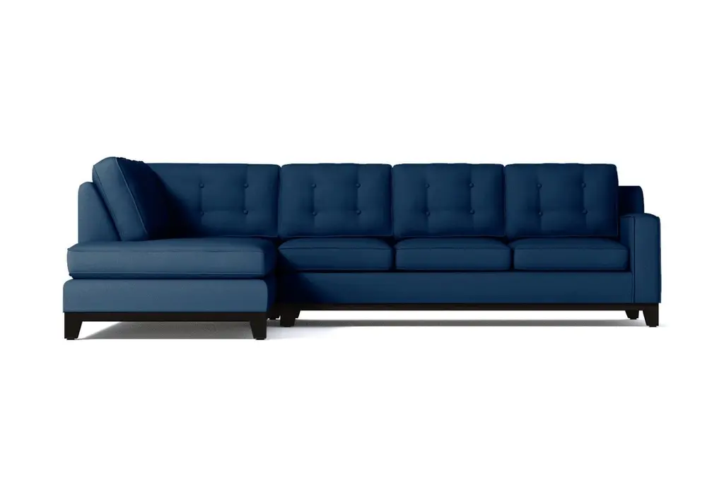 Need to button up the design of your room? Look no further than the Marco 2 Piece Sleeper Sectional Sofa. The Marco is a sleeper sectional with a formal, refined profile, a stunning wood base, and a winged arm that's perfect for supporting your head while you read your favorite book. But don't let the tufted accents deceive you - the Marco is also an extremely comfortable sofa that you won't want to leave once you sit down. Seriously, this is your only warning. It's not easy to have it all, but the Marco manages to pull together all the best attributes of every sofa style: it's comfortable, it's versatile, it has sharp button tufted accents, it's a sectional, and it's a sleeper sofa. What more could you possible want? The Marco 2 Piece Sleeper Sectional Sofa features a Queen Size mattress, detachable and flippable cushions, and a long comfy chaise. This versatile, tufted couch is also built to order in our downtown Los Angeles factory (made in the USA!) and it can be upholstered in any of Apt2B's fantastic line of kid friendly and pet friendly fabrics. The Marco is truly the point where form meets function.