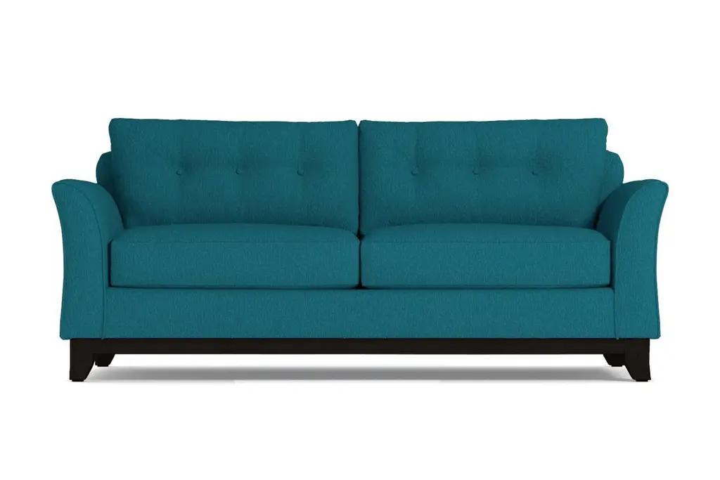 Modern meets classic royalty in this incredibly stylish and totally customizable Marco sleeper sofa bed. The regal look starts with tufted buttons on the back cushions and a beautifully stained wood base. But this throne has a special surprise inside. Open it up and you'll have a queen-size mattress fit for even the most distinguished guests. After all, you can't expect royalty to sleep on your old air mattress. Trust us - with one of these mattresses, they'll definitely feel like they're getting the royal treatment. This comfortable sleeper sofa bed makes it easy to add sleek style to your space while also turning any area into an instant guest room. Customize your couch by choosing from our selection of fabrics in rich, beautiful colors and our variety of leg finish options. You can also choose whether your sofa includes a classically cozy innerspring or a luxurious memory foam mattress. This sleeper sofa bed is made in the USA and comes with a limited lifetime warranty.