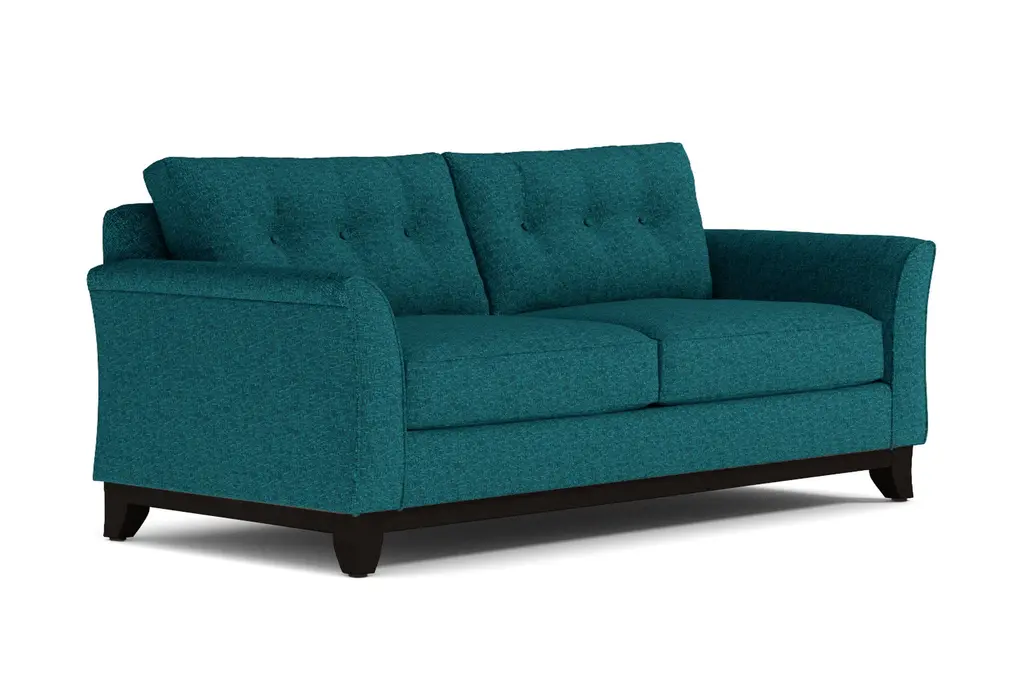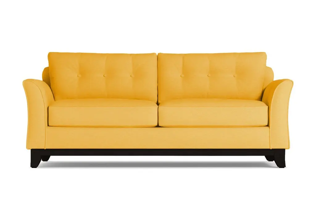 Modern meets classic royalty in this incredibly stylish and totally customizable Marco sleeper sofa bed. The regal look starts with tufted buttons on the back cushions and a beautifully stained wood base. But this throne has a special surprise inside. Open it up and you'll have a queen-size mattress fit for even the most distinguished guests. After all, you can't expect royalty to sleep on your old air mattress. Trust us - with one of these mattresses, they'll definitely feel like they're getting the royal treatment. This comfortable sleeper sofa bed makes it easy to add sleek style to your space while also turning any area into an instant guest room. Customize your couch by choosing from our selection of fabrics in rich, beautiful colors and our variety of leg finish options. You can also choose whether your sofa includes a classically cozy innerspring or a luxurious memory foam mattress. This sleeper sofa bed is made in the USA and comes with a limited lifetime warranty.