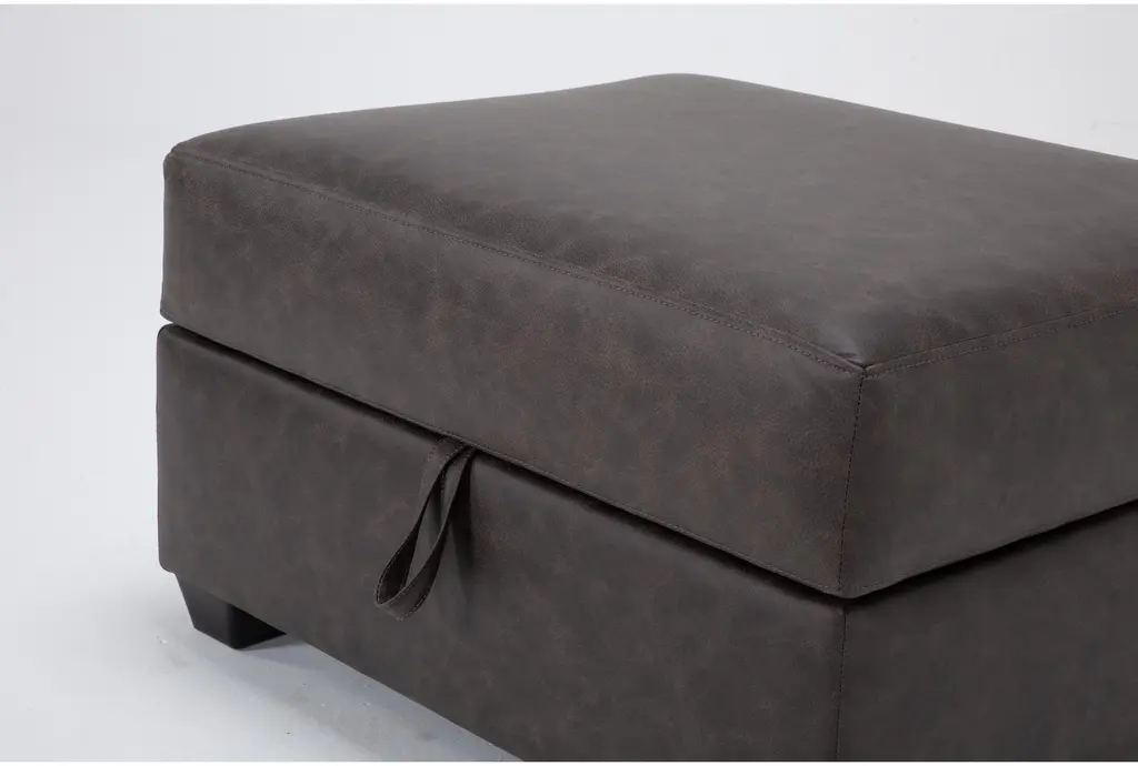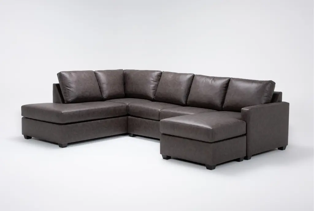 Mathers Grey Brown Vegan Faux Leather 2 Piece Sectional With Right Arm Facing Sleeper Sofa Chaise + Left Arm Facing Corner Chaise & Ottoman