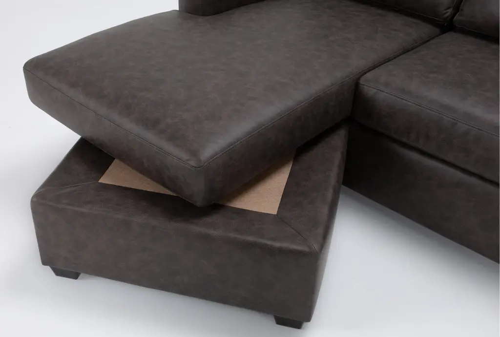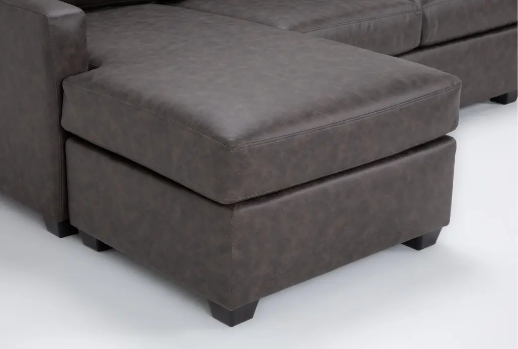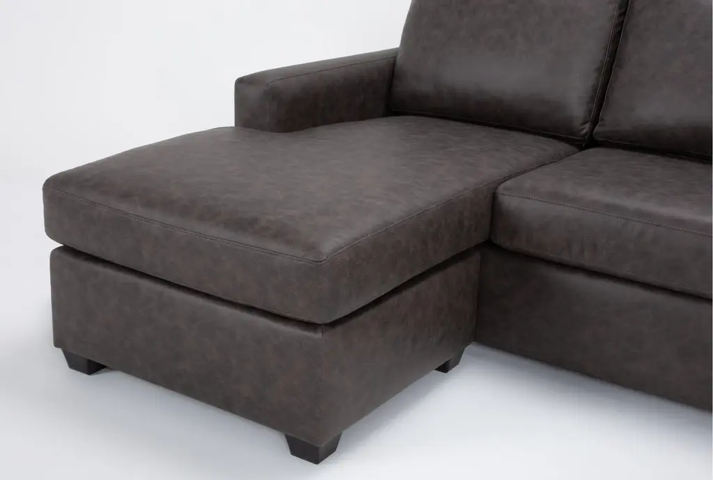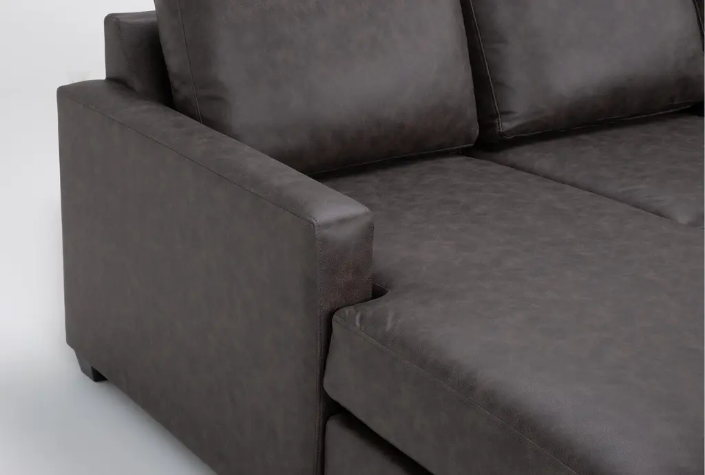 Mathers Grey Brown Vegan Faux Leather Left Arm Facing Sleeper Sofa Chaise