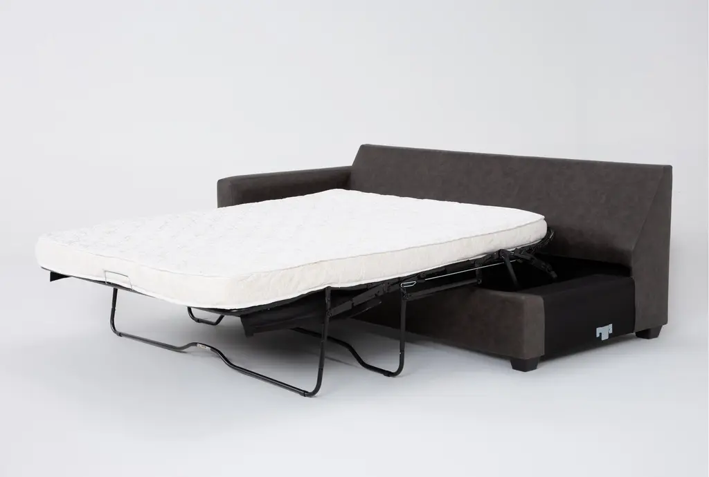 Clean lines and tailored style give our Mathers faux leather left arm facing sleeper sofa chaise mass appeal, not to mention the abundance of options you have when it comes to configuration and color. Made for and by Living Spaces, it's available in multiple hues and seating arrangements with a core design that is casual, comfortable and modern. In addition to a hardwood and plywood track arm frame that is precision cut for strength, there are loose, reversible cushions that can be rotated to promote even wear and longevity. Finally, vegan faux leather ensures handsome, durable coverage. You'll love the grounded color palette, which favors earth tones.