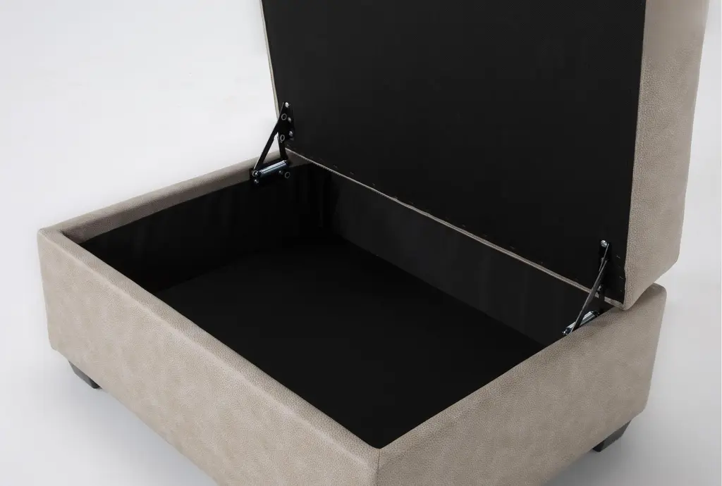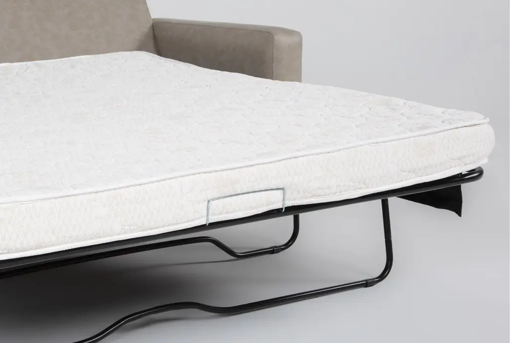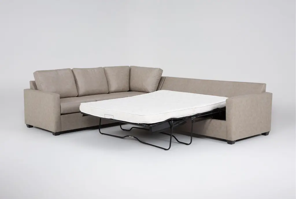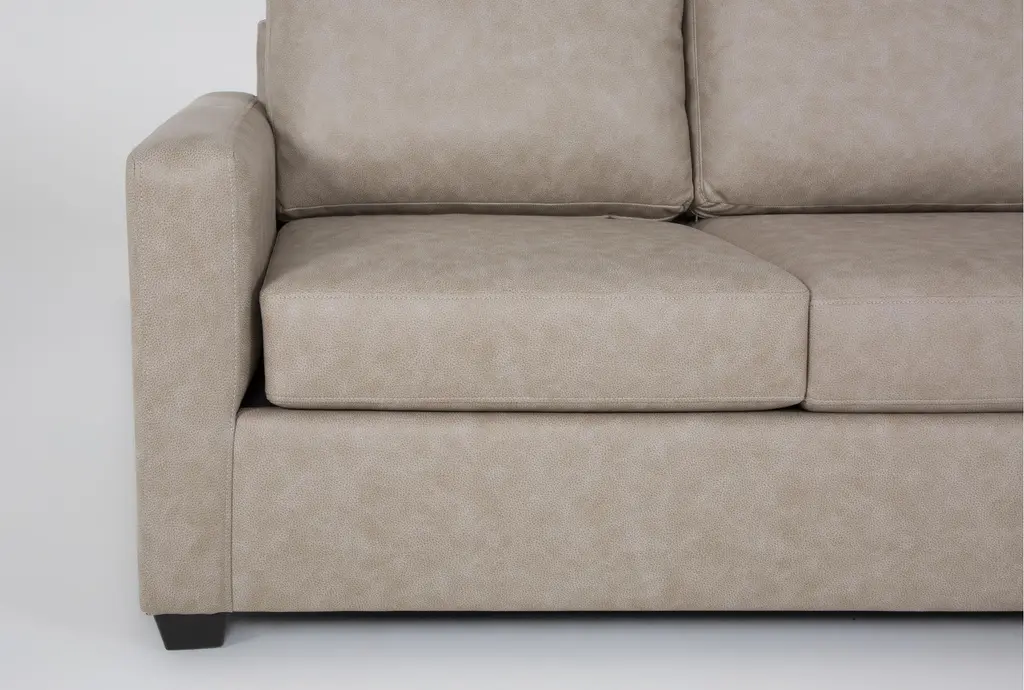 Mathers Mocha Beige Brown Vegan Faux Leather 2 Piece Sectional With Right Arm Facing Queen Sleeper Sofa & Ottoman | Fabric