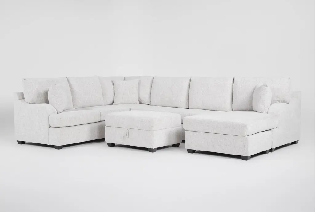 Enhance your living room with the stylish and functional Mathers Mocha Beige Brown Vegan Faux Leather 2 Piece Sectional with Right Arm Facing Queen Sleeper Sofa & Ottoman. This modern sectional offers a sleek design that complements any decor, while the faux leather upholstery provides a luxurious feel. Perfect for entertaining guests or relaxing with family, this sectional is both versatile and comfortable.