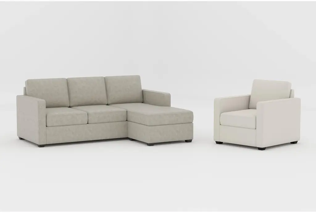 Mathers Mocha Vegan Faux Leather Sleeper Sofa With Reversible Chaise|mathers Cream Beige Fabric 37" Armchair
