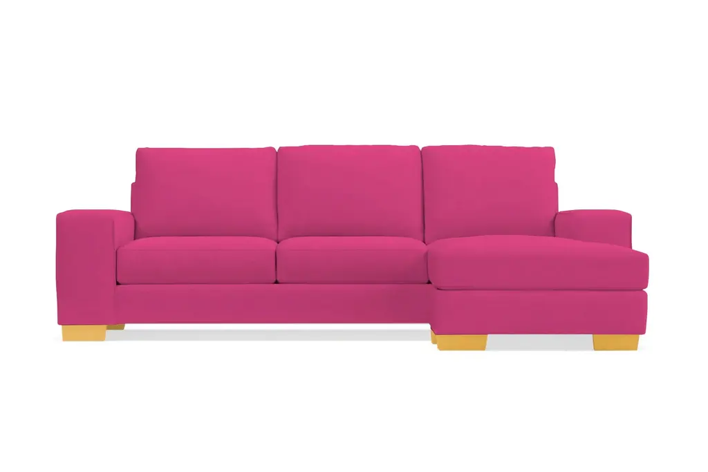 Sectional sofas just got a whole lot sexier thanks to the Melrose sleeper sofa bed. This unique design includes a reversible chaise and is completely customizable in terms of color, so you don't have to worry about your sofa fitting into your space. Meanwhile, it features a sleek low-rise design with cozy cushions and wide track arms. But this convenient couch has one big secret; inside, there's a queen size deluxe innerspring mattress, instantly converting your living room into a swanky guest room for your overnight visitors. The Melrose sleeper sectional with reversible chaise is made in the USA and it comes with a limited lifetime warranty. Customize your Melrose sleeper with chaise by picking from our lovely fabric colors, which include bold, bright tones as well as classic neutrals. You'll also get to choose the leg finish and, if you want to make it even more luxurious, upgrade to a memory foam mattress.