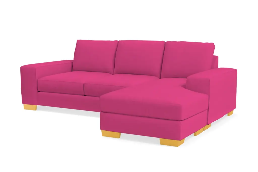 Sectional sofas just got a whole lot sexier thanks to the Melrose sleeper sofa bed. This unique design includes a reversible chaise and is completely customizable in terms of color, so you don't have to worry about your sofa fitting into your space. Meanwhile, it features a sleek low-rise design with cozy cushions and wide track arms. But this convenient couch has one big secret; inside, there's a queen size deluxe innerspring mattress, instantly converting your living room into a swanky guest room for your overnight visitors. The Melrose sleeper sectional with reversible chaise is made in the USA and it comes with a limited lifetime warranty. Customize your Melrose sleeper with chaise by picking from our lovely fabric colors, which include bold, bright tones as well as classic neutrals. You'll also get to choose the leg finish and, if you want to make it even more luxurious, upgrade to a memory foam mattress.