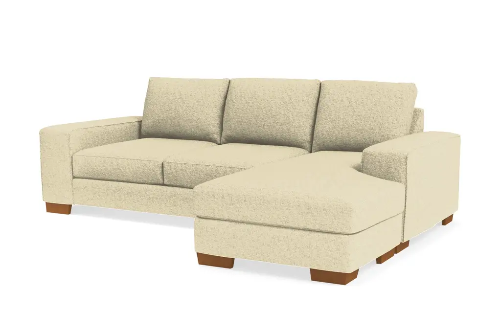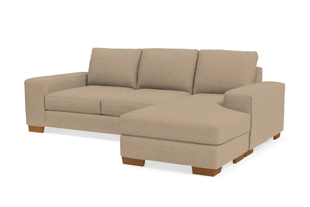 Sectional sofas just got a whole lot sexier thanks to the Melrose sleeper sofa bed. This unique design includes a reversible chaise and is completely customizable in terms of color, so you don't have to worry about your sofa fitting into your space. Meanwhile, it features a sleek low-rise design with cozy cushions and wide track arms. But this convenient couch has one big secret; inside, there's a queen size deluxe innerspring mattress, instantly converting your living room into a swanky guest room for your overnight visitors. The Melrose sleeper sectional with reversible chaise is made in the USA and it comes with a limited lifetime warranty. Customize your Melrose sleeper with chaise by picking from our lovely fabric colors, which include bold, bright tones as well as classic neutrals. You'll also get to choose the leg finish and, if you want to make it even more luxurious, upgrade to a memory foam mattress.