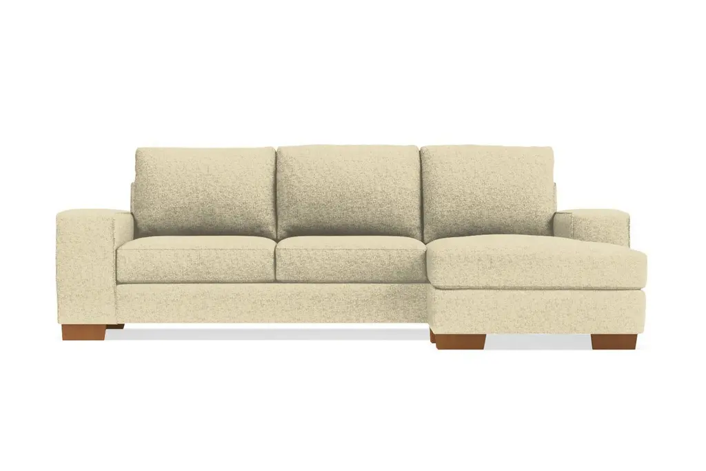 Sectional sofas just got a whole lot sexier thanks to the Melrose sleeper sofa bed. This unique design includes a reversible chaise and is completely customizable in terms of color, so you don't have to worry about your sofa fitting into your space. Meanwhile, it features a sleek low-rise design with cozy cushions and wide track arms. But this convenient couch has one big secret; inside, there's a queen size deluxe innerspring mattress, instantly converting your living room into a swanky guest room for your overnight visitors. The Melrose sleeper sectional with reversible chaise is made in the USA and it comes with a limited lifetime warranty. Customize your Melrose sleeper with chaise by picking from our lovely fabric colors, which include bold, bright tones as well as classic neutrals. You'll also get to choose the leg finish and, if you want to make it even more luxurious, upgrade to a memory foam mattress.