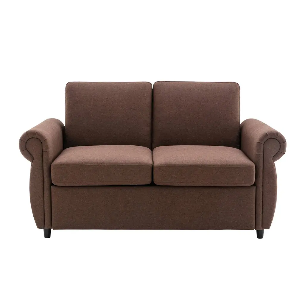Merax Pull Out Sofa Bed Loveseat Sleeper With Twin Size Memory Mattress - Brown