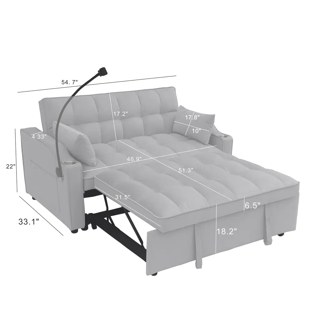 Modern Convertible Sleeper Sofa Velvet Loveseat Futon Sofa Couch - Light Gray