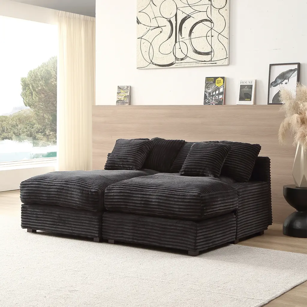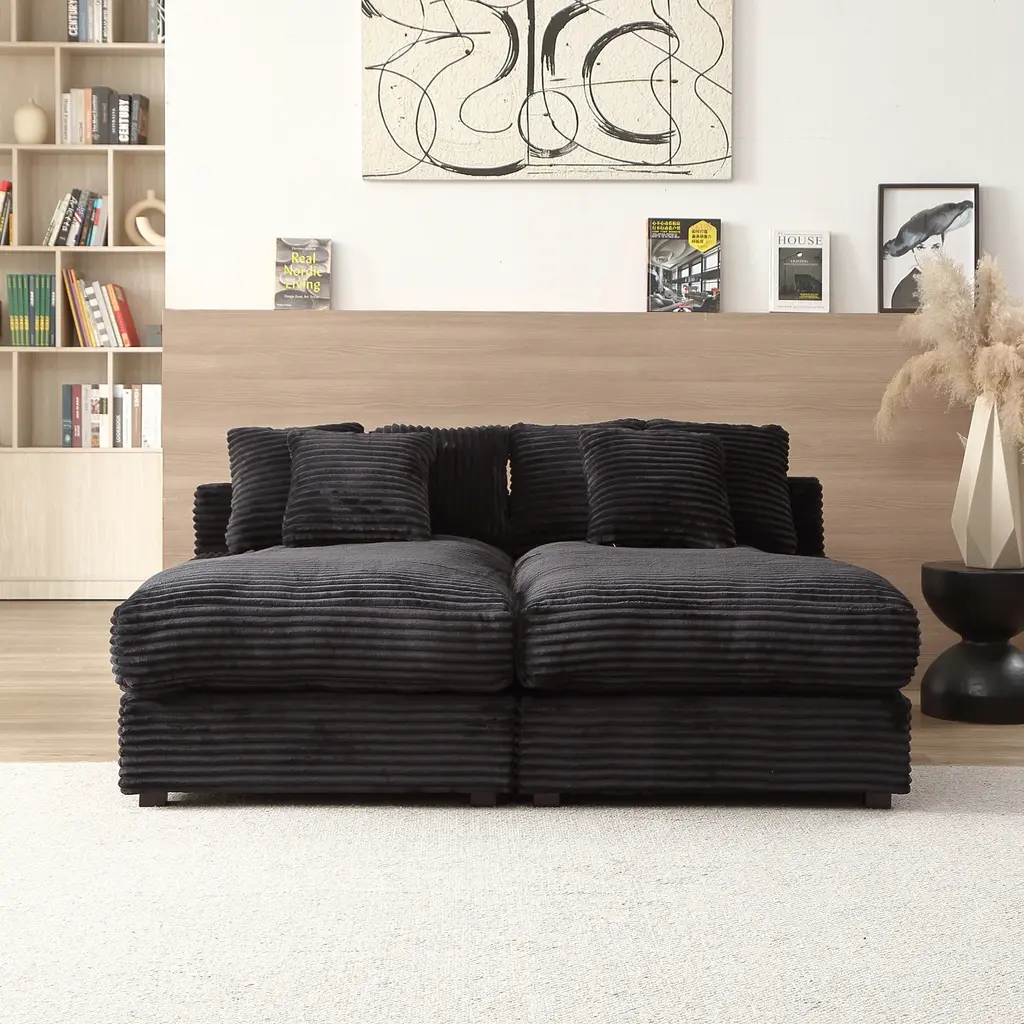 Modern Luxury Twins Sofa Couch, Quality Corduroy Upholstery Sleeper Sofa Bed Daybed - Black