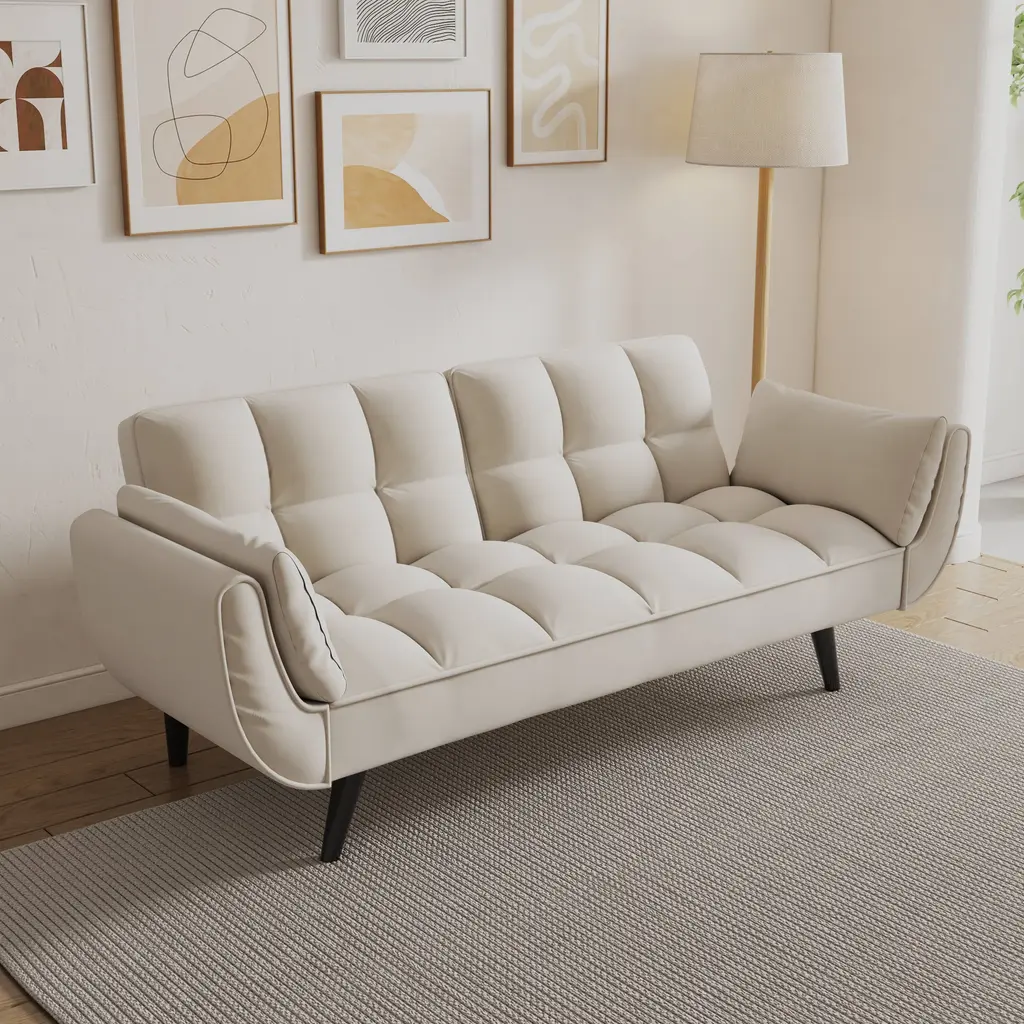 The clustered back and seat, well-distributed stitching makes it more comfortable. Weight Capacity: 300LB.Can be Turned into a Bed: The back of the sofa can be put down as a bed. Get ready for overnight guests and take advantage of the adjustable back to switch from sofa to comfortable bed in seconds.Multiple Adjustable Postures: 3 adjustable postures provide different levels of comfort. If you want to watch TV in the living room, you can adjust the backrest, and if you want to take a nap, you can adjust the angle to 180° as a bed.Easy to Assemble: The sofa adopts a simple assembly design, you only need to assemble the legs on the sofa to complete the assembly.