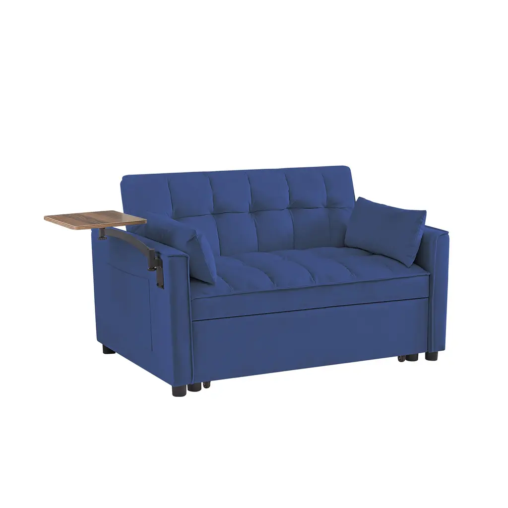 Elevate your living space with the Modern Velvet Loveseat Sofa Bed, designed to offer both elegance and practicality. This chic accent arm sofa features a luxurious velvet upholstery that adds a touch of sophistication to any room. Transform it effortlessly from a stylish loveseat into a comfortable sofa bed, making it perfect for accommodating guests or relaxing after a long day. Its contemporary design and versatile functionality make it an ideal choice for modern living spaces, combining beauty with utility seamlessly. The luxurious velvet upholstery not only enhances the sofa's visual appeal but also provides a soft, plush texture that is comfortable to the touch. The fabric is designed to add a touch of elegance and sophistication, making it a standout piece in any room. The accent arm design adds a stylish touch while providing additional support and comfort. The arms are designed to complement the overall aesthetic of the sofa while offering practical support for lounging or resting. This sofa bed features a convenient transformation mechanism, allowing you to switch from a loveseat to a full-size sofa bed with ease. This dual functionality is perfect for hosting guests or providing additional sleeping space in your home. The modern design of this sofa bed fits seamlessly into contemporary decor. Its sleek lines and refined look make it an ideal addition to any modern living area, offering both style and functionality without compromising on space.