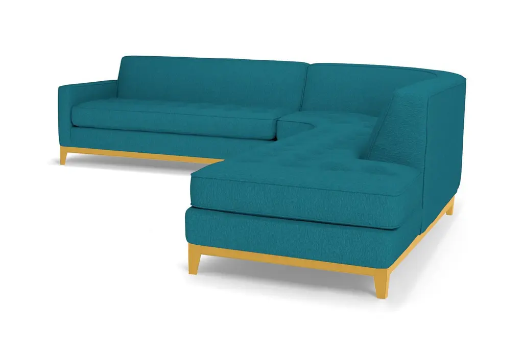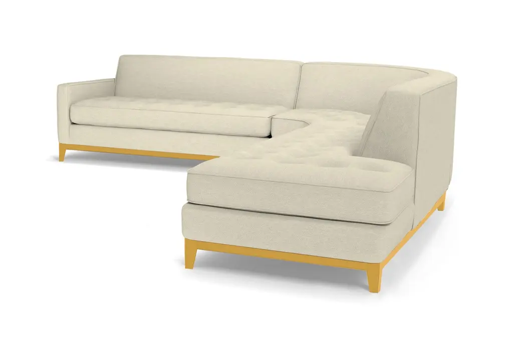 The Monroe Drive Collection is a modern update of our show-stopping Monroe Collection. The same eye-catching Mid Century Modern design details that defined the Monroe are still on display, but now with the addition of a stunning, solid wood base and a Full-Sized pull-out sleeper mattress! The sophisticated button-tufted cushions and sleek tight back make the Monroe Drive look like it came straight from a classic Hollywood film set. The contemporary base creates a handsome, formal profile that allows the Monroe Drive to feel right at home in a variety of different decor styles. The Monroe Drive 3pc Sectional Sofa creates a dramatic and eye-catching statement in any space. Available in your custom choice of our kid friendly and pet friendly fabrics, the Monroe Drive is perfect for your family home, for your sophisticated apartment, or for your chic small space loft. The Monroe Drive 3pc Sleeper Sectional features a Full-Sized Deluxe Innerspring Mattress or an upgraded Memory Foam Mattress. This makes the Monroe Drive one of the most visually-appealing and versatile sofa beds around. You've truly never seen a 3pc sleeper sofa like this! It also comes with a limited lifetime warranty and free delivery!
