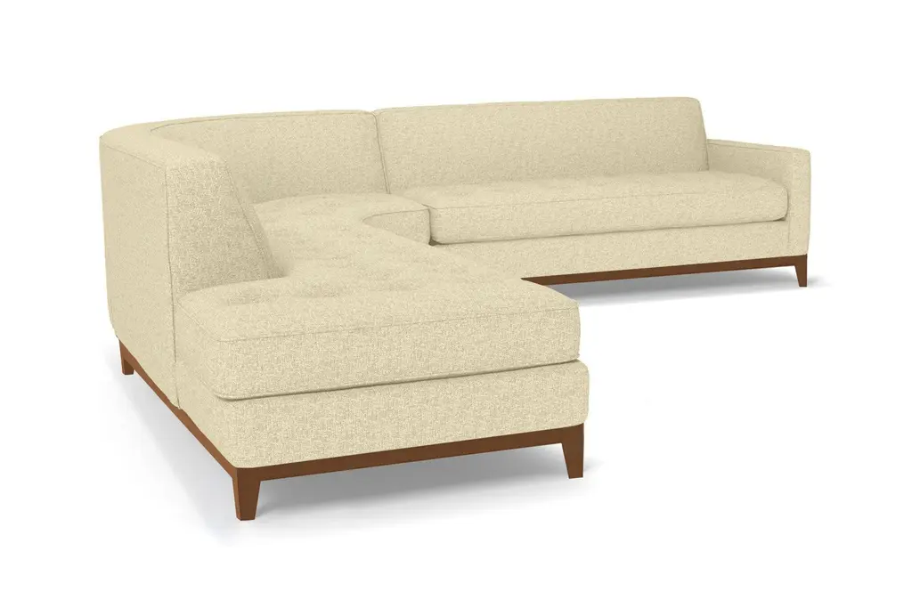 The Monroe Drive Collection is a modern update of our show-stopping Monroe Collection. The same eye-catching Mid Century Modern design details that defined the Monroe are still on display, but now with the addition of a stunning, solid wood base and a Full-Sized pull-out sleeper mattress! The sophisticated button-tufted cushions and sleek tight back make the Monroe Drive look like it came straight from a classic Hollywood film set. The contemporary base creates a handsome, formal profile that allows the Monroe Drive to feel right at home in a variety of different decor styles. The Monroe Drive 3pc Sectional Sofa creates a dramatic and eye-catching statement in any space. Available in your custom choice of our kid friendly and pet friendly fabrics, the Monroe Drive is perfect for your family home, for your sophisticated apartment, or for your chic small space loft. The Monroe Drive 3pc Sleeper Sectional features a Full-Sized Deluxe Innerspring Mattress or an upgraded Memory Foam Mattress. This makes the Monroe Drive one of the most visually-appealing and versatile sofa beds around. You've truly never seen a 3pc sleeper sofa like this! It also comes with a limited lifetime warranty and free delivery!