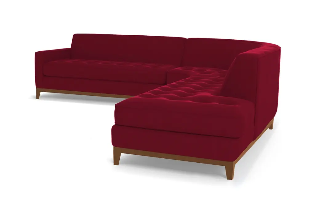 The Monroe Drive Collection is a modern update of our show-stopping Monroe Collection. The same eye-catching Mid Century Modern design details that defined the Monroe are still on display, but now with the addition of a stunning, solid wood base and a Full-Sized pull-out sleeper mattress! The sophisticated button-tufted cushions and sleek tight back make the Monroe Drive look like it came straight from a classic Hollywood film set. The contemporary base creates a handsome, formal profile that allows the Monroe Drive to feel right at home in a variety of different decor styles. The Monroe Drive 3pc Sectional Sofa creates a dramatic and eye-catching statement in any space. Available in your custom choice of our kid friendly and pet friendly fabrics, the Monroe Drive is perfect for your family home, for your sophisticated apartment, or for your chic small space loft. The Monroe Drive 3pc Sleeper Sectional features a Full-Sized Deluxe Innerspring Mattress or an upgraded Memory Foam Mattress. This makes the Monroe Drive one of the most visually-appealing and versatile sofa beds around. You've truly never seen a 3pc sleeper sofa like this! It also comes with a limited lifetime warranty and free delivery!