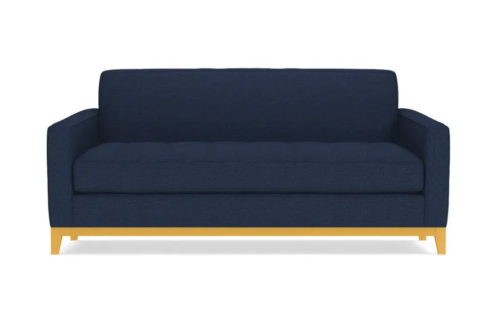 The Monroe Drive Collection is a modern update of our show-stopping Monroe Collection. The same eye-catching Mid Century Modern design details that defined the Monroe are still on display, but now with the addition of a stunning, solid wood base and a Full-Sized pull-out sleeper mattress! The sophisticated button-tufted cushions and sleek tight back make the Monroe Drive look like it came straight from a classic Hollywood film set. The contemporary base creates a handsome, formal profile that allows the Monroe Drive to feel right at home in a variety of different decor styles. Available in your custom choice of our kid friendly and pet friendly fabrics, the Monroe Drive is perfect for your family home, for your sophisticated apartment, or for your chic small space loft. The Monroe Drive Apartment Size sleeper sofa bed features a Full-Sized Deluxe Innerspring Mattress or an upgraded Memory Foam Mattress. This makes the Monroe Drive one of the most visually-appealing and versatile sofa beds around. It also comes with a limited lifetime warranty and free delivery!