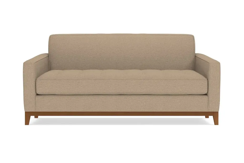 The Monroe Drive Collection is a modern update of our show-stopping Monroe Collection. The same eye-catching Mid Century Modern design details that defined the Monroe are still on display, but now with the addition of a stunning, solid wood base and a Full-Sized pull-out sleeper mattress! The sophisticated button-tufted cushions and sleek tight back make the Monroe Drive look like it came straight from a classic Hollywood film set. The contemporary base creates a handsome, formal profile that allows the Monroe Drive to feel right at home in a variety of different decor styles. Available in your custom choice of our kid friendly and pet friendly fabrics, the Monroe Drive is perfect for your family home, for your sophisticated apartment, or for your chic small space loft. The Monroe Drive Apartment Size sleeper sofa bed features a Full-Sized Deluxe Innerspring Mattress or an upgraded Memory Foam Mattress. This makes the Monroe Drive one of the most visually-appealing and versatile sofa beds around. It also comes with a limited lifetime warranty and free delivery!