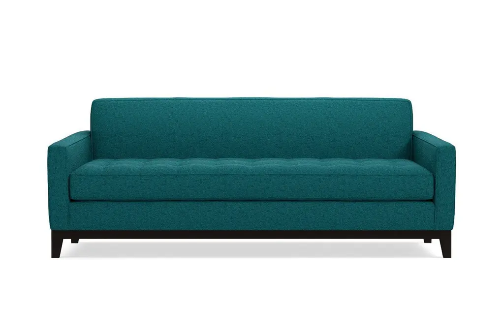 The Monroe Drive Collection is a modern update of our show-stopping Monroe Collection. The same eye-catching Mid Century Modern design details that defined the Monroe are still on display, but now with the addition of a stunning, solid wood base and a Queen-Sized pull-out sleeper mattress! The sophisticated button-tufted cushions and sleek tight back make The Monroe Drive look like it came straight from a classic Hollywood film set. The contemporary base creates a handsome, formal profile that allows the Monroe Drive to feel right at home in a variety of different decor styles. Available in your custom choice of our kid friendly and pet friendly fabrics, the Monroe Drive is perfect for your family home, for your sophisticated apartment, or for your chic small space loft. The Monroe Drive Queen Size sleeper sofa bed features a Queen-Sized Deluxe Innerspring Mattress or an upgraded Memory Foam Mattress. This makes the Monroe Drive one of the most visually-appealing and versatile sofa beds around. It also comes with a limited lifetime warranty and free delivery!