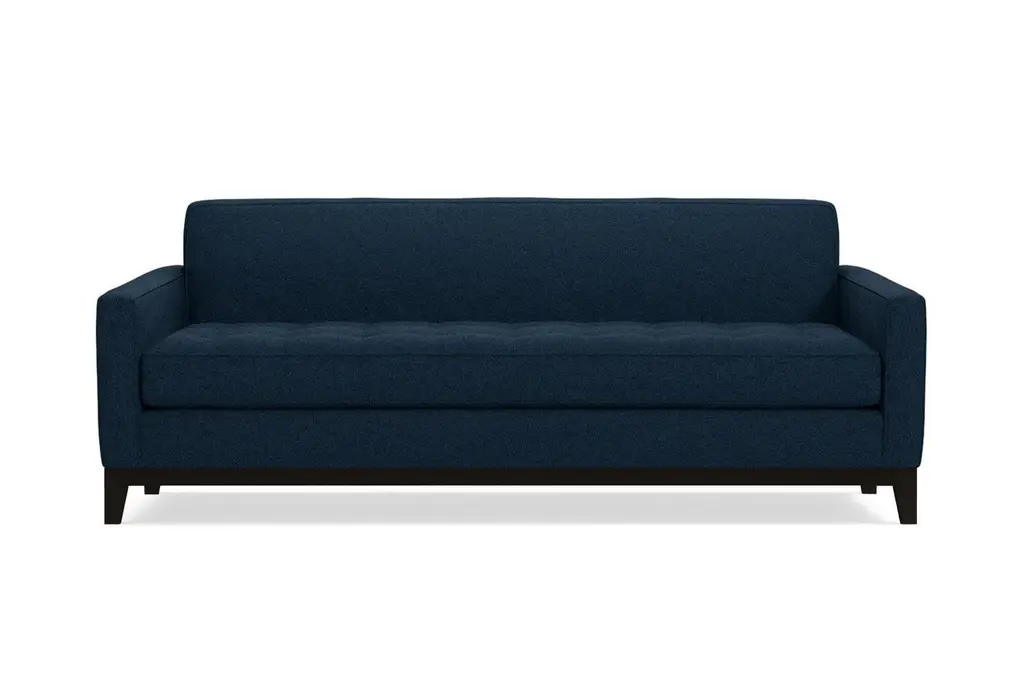 The Monroe Drive Collection is a modern update of our show-stopping Monroe Collection. The same eye-catching Mid Century Modern design details that defined the Monroe are still on display, but now with the addition of a stunning, solid wood base and a Queen-Sized pull-out sleeper mattress! The sophisticated button-tufted cushions and sleek tight back make The Monroe Drive look like it came straight from a classic Hollywood film set. The contemporary base creates a handsome, formal profile that allows the Monroe Drive to feel right at home in a variety of different decor styles. Available in your custom choice of our kid friendly and pet friendly fabrics, the Monroe Drive is perfect for your family home, for your sophisticated apartment, or for your chic small space loft. The Monroe Drive Queen Size sleeper sofa bed features a Queen-Sized Deluxe Innerspring Mattress or an upgraded Memory Foam Mattress. This makes the Monroe Drive one of the most visually-appealing and versatile sofa beds around. It also comes with a limited lifetime warranty and free delivery!