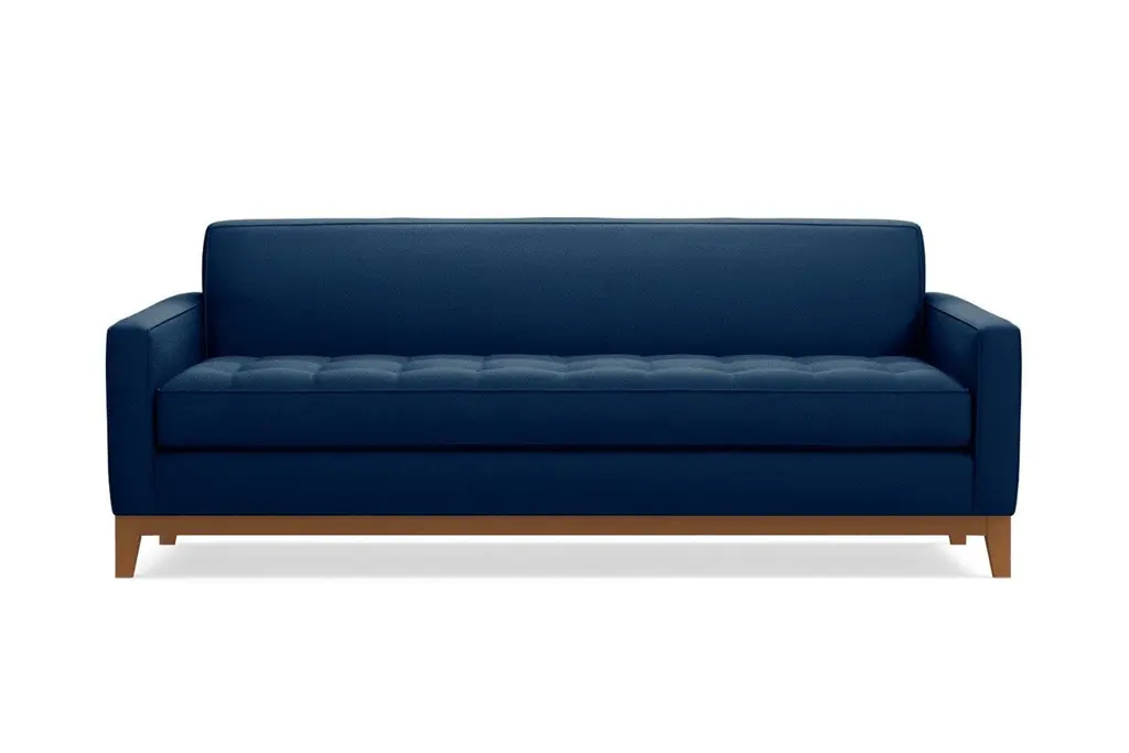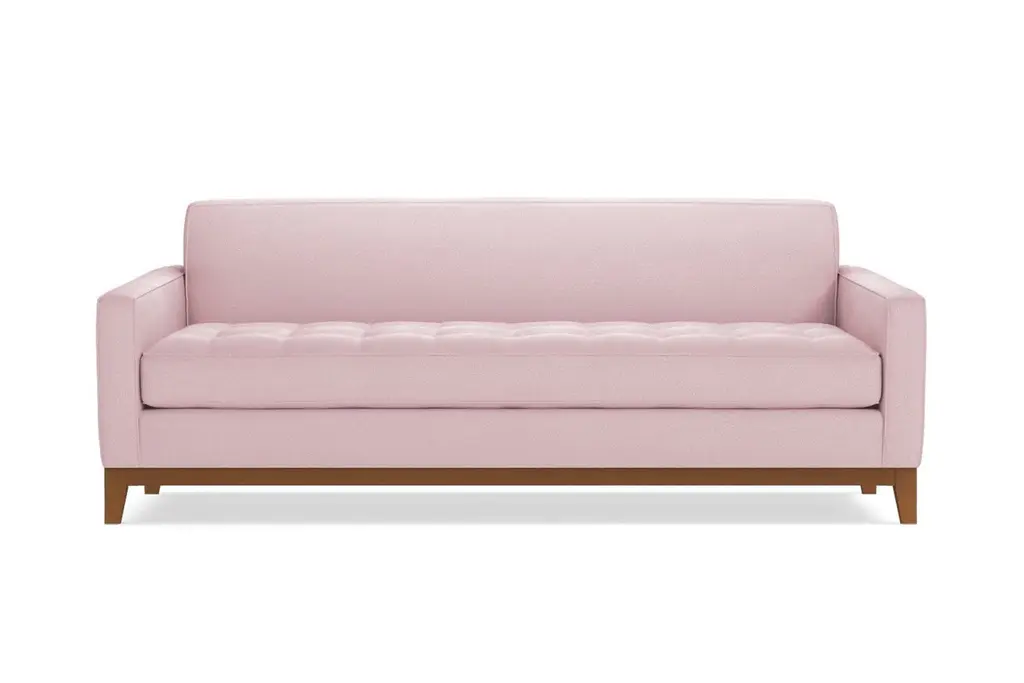 The Monroe Drive Collection is a modern update of our show-stopping Monroe Collection. The same eye-catching mid-century modern design details that defined the Monroe are still on display, but now with the addition of a stunning, solid wood base and a queen-sized pull-out sleeper mattress! It’s the ultimate combination of style and versatility that can totally transform your living space. The sophisticated button-tufted cushions and sleek tight back make the Monroe Drive sofa bed couch look like it came straight from a classic Hollywood film set. The contemporary wraparound base creates a handsome, formal profile that allows the Monroe Drive to feel right at home in a variety of different decor styles. Whether your home has a modern or traditional feel, this pull-out couch can fit right to bring a little extra glamor to your space. Available in your custom choice of our kid-friendly and pet-friendly fabrics, the Monroe Drive sofa bed and couch is perfect for your family home, sophisticated apartment or chic small space loft. There are over 50 stunning upholstery options from which to choose, allowing you to find the perfect color and fabric style to suit your needs. Whether you prefer ultra-plush velvet or a vintage-inspired woven fabric, you’ll find it at Apt2B. If you can’t decide just yet, order up to 10 free fabric swatches from our collection so you can see them in person before finalizing your order. The Monroe Drive sleeper sofa bed is one of the most visually appealing and versatile sofa beds around. Choose whether you want to get this queen sleeper sofa with a memory foam mattress or a deluxe innerspring mattress to suit your guests’ needs. It also comes with a limited lifetime warranty and free delivery! Made in the USA at our Los Angeles facility, this piece is built by skilled craftsmen who use durable kiln-dried alder wood and high-density foam to ensure your furniture is built to last. Plus, you’ll get free delivery and our 100-day satisfaction guarantee. Order the Monroe Drive Queen-Size Sleeper Sofa Bed today to take your space to the next level of style, comfort and versatility.