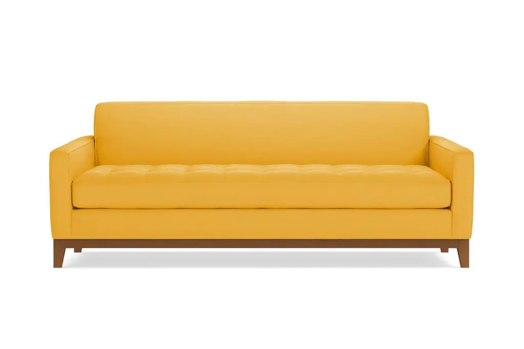 The Monroe Drive Collection is a modern update of our show-stopping Monroe Collection. The same eye-catching mid-century modern design details that defined the Monroe are still on display, but now with the addition of a stunning, solid wood base and a queen-sized pull-out sleeper mattress! It’s the ultimate combination of style and versatility that can totally transform your living space.  The sophisticated button-tufted cushions and sleek tight back make the Monroe Drive sofa bed couch look like it came straight from a classic Hollywood film set. The contemporary wraparound base creates a handsome, formal profile that allows the Monroe Drive to feel right at home in a variety of different decor styles. Whether your home has a modern or traditional feel, this pull-out couch can fit right to bring a little extra glamor to your space. Available in your custom choice of our kid-friendly and pet-friendly fabrics, the Monroe Drive sofa bed and couch is perfect for your family home, sophisticated apartment or chic small space loft. There are over 50 stunning upholstery options from which to choose, allowing you to find the perfect color and fabric style to suit your needs. Whether you prefer ultra-plush velvet or a vintage-inspired woven fabric, you’ll find it at Apt2B. If you can’t decide just yet, order up to 10 free fabric swatches from our collection so you can see them in person before finalizing your order. The Monroe Drive sleeper sofa bed is one of the most visually appealing and versatile sofa beds around. Choose whether you want to get this queen sleeper sofa with a memory foam mattress or a deluxe innerspring mattress to suit your guests’ needs. It also comes with a limited lifetime warranty and free delivery! Made in the USA at our Los Angeles facility, this piece is built by skilled craftsmen who use durable kiln-dried alder wood and high-density foam to ensure your furniture is built to last. Plus, you’ll get free delivery and our 100-day satisfaction guarantee. Order the Monroe Drive Queen-Size Sleeper Sofa Bed today to take your space to the next level of style, comfort and versatility.