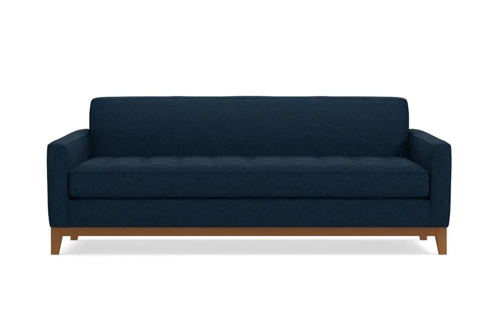 The Monroe Drive Collection is a modern update of our show-stopping Monroe Collection. The same eye-catching mid-century modern design details that defined the Monroe are still on display, but now with the addition of a stunning, solid wood base and a queen-sized pull-out sleeper mattress! It’s the ultimate combination of style and versatility that can totally transform your living space.  The sophisticated button-tufted cushions and sleek tight back make the Monroe Drive sofa bed couch look like it came straight from a classic Hollywood film set. The contemporary wraparound base creates a handsome, formal profile that allows the Monroe Drive to feel right at home in a variety of different decor styles. Whether your home has a modern or traditional feel, this pull-out couch can fit right to bring a little extra glamor to your space. Available in your custom choice of our kid-friendly and pet-friendly fabrics, the Monroe Drive sofa bed and couch is perfect for your family home, sophisticated apartment or chic small space loft. There are over 50 stunning upholstery options from which to choose, allowing you to find the perfect color and fabric style to suit your needs. Whether you prefer ultra-plush velvet or a vintage-inspired woven fabric, you’ll find it at Apt2B. If you can’t decide just yet, order up to 10 free fabric swatches from our collection so you can see them in person before finalizing your order. The Monroe Drive sleeper sofa bed is one of the most visually appealing and versatile sofa beds around. Choose whether you want to get this queen sleeper sofa with a memory foam mattress or a deluxe innerspring mattress to suit your guests’ needs. It also comes with a limited lifetime warranty and free delivery! Made in the USA at our Los Angeles facility, this piece is built by skilled craftsmen who use durable kiln-dried alder wood and high-density foam to ensure your furniture is built to last. Plus, you’ll get free delivery and our 100-day satisfaction guarantee. Order the Monroe Drive Queen-Size Sleeper Sofa Bed today to take your space to the next level of style, comfort and versatility.