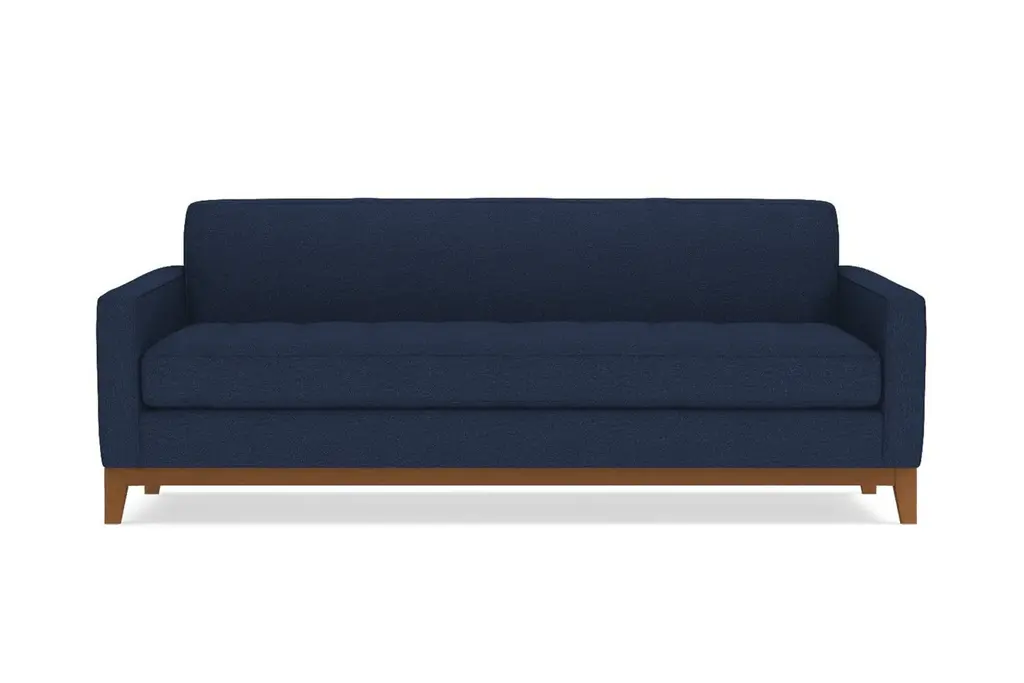 The Monroe Drive Collection is a modern update of our show-stopping Monroe Collection. The same eye-catching mid-century modern design details that defined the Monroe are still on display, but now with the addition of a stunning, solid wood base and a queen-sized pull-out sleeper mattress! It’s the ultimate combination of style and versatility that can totally transform your living space. The sophisticated button-tufted cushions and sleek tight back make the Monroe Drive sofa bed couch look like it came straight from a classic Hollywood film set. The contemporary wraparound base creates a handsome, formal profile that allows the Monroe Drive to feel right at home in a variety of different decor styles. Whether your home has a modern or traditional feel, this pull-out couch can fit right to bring a little extra glamor to your space. Available in your custom choice of our kid-friendly and pet-friendly fabrics, the Monroe Drive sofa bed and couch is perfect for your family home, sophisticated apartment or chic small space loft. There are over 50 stunning upholstery options from which to choose, allowing you to find the perfect color and fabric style to suit your needs. Whether you prefer ultra-plush velvet or a vintage-inspired woven fabric, you’ll find it at Apt2B. If you can’t decide just yet, order up to 10 free fabric swatches from our collection so you can see them in person before finalizing your order. The Monroe Drive sleeper sofa bed is one of the most visually appealing and versatile sofa beds around. Choose whether you want to get this queen sleeper sofa with a memory foam mattress or a deluxe innerspring mattress to suit your guests’ needs. It also comes with a limited lifetime warranty and free delivery! Made in the USA at our Los Angeles facility, this piece is built by skilled craftsmen who use durable kiln-dried alder wood and high-density foam to ensure your furniture is built to last. Plus, you’ll get free delivery and our 100-day satisfaction guarantee. Order the Monroe Drive Queen-Size Sleeper Sofa Bed today to take your space to the next level of style, comfort and versatility.