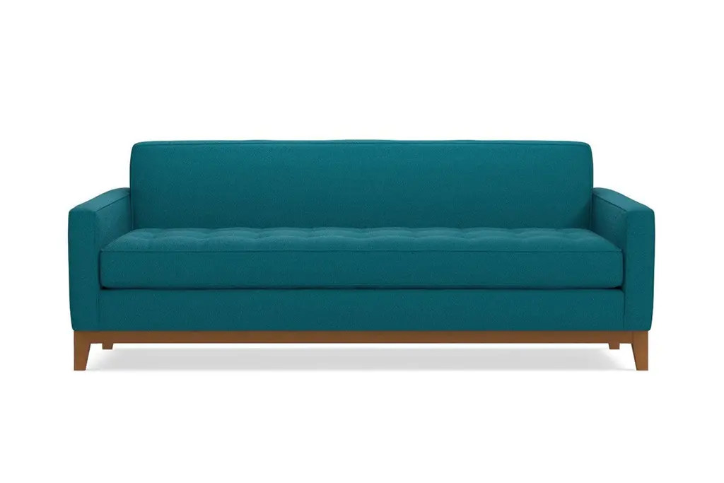 The Monroe Drive Collection is a modern update of our show-stopping Monroe Collection. The same eye-catching mid-century modern design details that defined the Monroe are still on display, but now with the addition of a stunning, solid wood base and a queen-sized pull-out sleeper mattress! It’s the ultimate combination of style and versatility that can totally transform your living space. The sophisticated button-tufted cushions and sleek tight back make the Monroe Drive sofa bed couch look like it came straight from a classic Hollywood film set. The contemporary wraparound base creates a handsome, formal profile that allows the Monroe Drive to feel right at home in a variety of different decor styles. Whether your home has a modern or traditional feel, this pull-out couch can fit right to bring a little extra glamor to your space. Available in your custom choice of our kid-friendly and pet-friendly fabrics, the Monroe Drive sofa bed and couch is perfect for your family home, sophisticated apartment or chic small space loft. There are over 50 stunning upholstery options from which to choose, allowing you to find the perfect color and fabric style to suit your needs. Whether you prefer ultra-plush velvet or a vintage-inspired woven fabric, you’ll find it at Apt2B. If you can’t decide just yet, order up to 10 free fabric swatches from our collection so you can see them in person before finalizing your order. The Monroe Drive sleeper sofa bed is one of the most visually appealing and versatile sofa beds around. Choose whether you want to get this queen sleeper sofa with a memory foam mattress or a deluxe innerspring mattress to suit your guests’ needs. It also comes with a limited lifetime warranty and free delivery! Made in the USA at our Los Angeles facility, this piece is built by skilled craftsmen who use durable kiln-dried alder wood and high-density foam to ensure your furniture is built to last. Plus, you’ll get free delivery and our 100-day satisfaction guarantee. Order the Monroe Drive Queen-Size Sleeper Sofa Bed today to take your space to the next level of style, comfort and versatility.