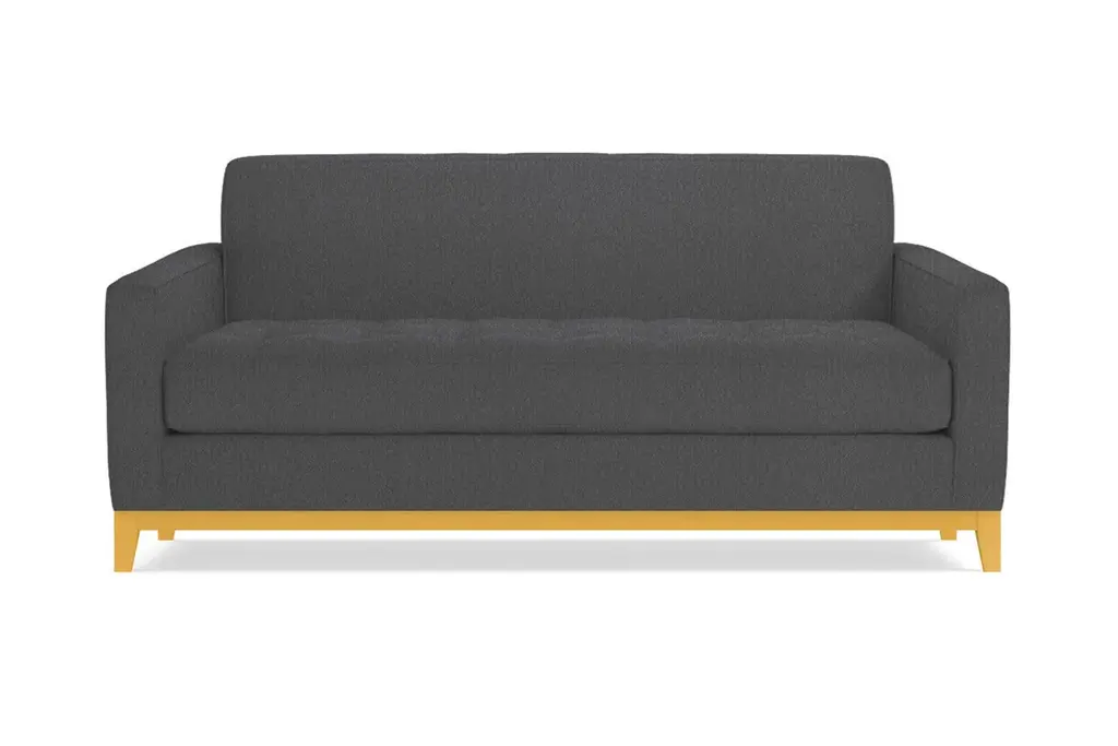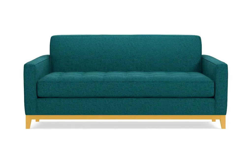 The Monroe Drive Collection is a modern update of our show-stopping Monroe Collection. The same eye-catching Mid Century Modern design details that defined the Monroe are still on display, but now with the addition of a stunning, solid wood base and a Twin-Sized pull-out sleeper mattress! The sophisticated button-tufted cushions and sleek tight back make the Monroe Drive look like it came straight from a classic Hollywood film set. The contemporary base creates a handsome, formal profile that allows the Monroe Drive to feel right at home in a variety of different decor styles. Available in your custom choice of our kid friendly and pet friendly fabrics, the Monroe Drive is perfect for your family home, for your sophisticated apartment, or for your chic small space loft. The Monroe Drive Twin Size sleeper sofa bed features a Twin-Sized Deluxe Innerspring Mattress or an upgraded Memory Foam Mattress. This makes the Monroe Drive one of the most visually-appealing and versatile sofa beds around. It also comes with a limited lifetime warranty and free delivery!