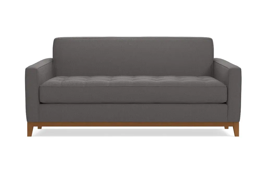 The Monroe Drive Collection is a modern update of our show-stopping Monroe Collection. The same eye-catching Mid Century Modern design details that defined the Monroe are still on display, but now with the addition of a stunning, solid wood base and a Twin-Sized pull-out sleeper mattress! The sophisticated button-tufted cushions and sleek tight back make the Monroe Drive look like it came straight from a classic Hollywood film set. The contemporary base creates a handsome, formal profile that allows the Monroe Drive to feel right at home in a variety of different decor styles. Available in your custom choice of our kid friendly and pet friendly fabrics, the Monroe Drive is perfect for your family home, for your sophisticated apartment, or for your chic small space loft. The Monroe Drive Twin Size sleeper sofa bed features a Twin-Sized Deluxe Innerspring Mattress or an upgraded Memory Foam Mattress. This makes the Monroe Drive one of the most visually-appealing and versatile sofa beds around. It also comes with a limited lifetime warranty and free delivery!
