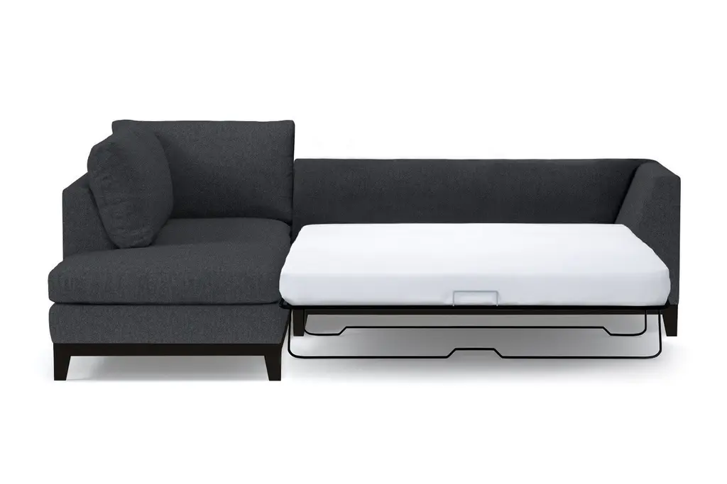 The Mulholland Drive 2-Piece Velvet Sleeper Sofa Sectional adds Old Hollywood glamour to your home. With clean lines and sumptuous velvet upholstery, this sectional sleeper takes midcentury modern design to a completely new level. Nothing says luxury like velvet. Choose your favorite shade from a variety of hues to create a pop of bright color or integrate with neutral décor. Either way, we’ll send you up to 10 free velvet fabric swatches so you can see what works and feel the luscious texture (and P.S. our velvets are kid- and pet-friendly!). Customize your Mulholland Drive velvet sectional sleeper with your choice of leg finish and a right- or left-side chaise. You also have a choice for the full-size pull-out mattress on a sturdy easy-fold mechanism: standard Deluxe Innerspring or Memory Foam for the ultimate upgrade. Our 2-piece velvet sleeper sofa sectional is custom made in our Los Angeles facility with a solid wood frame, 2.0-density foam seat cushions, a limited lifetime warranty on the frame and workmanship, and free shipping right to your door.
