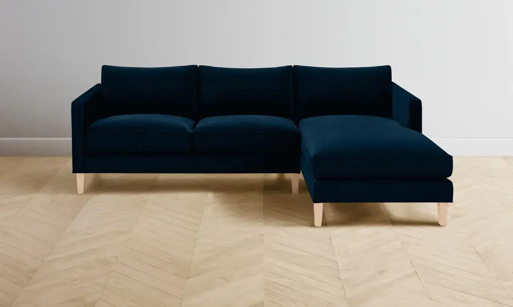 The Mulholland Drive 2-Piece Velvet Sleeper Sofa Sectional adds Old Hollywood glamour to your home. With clean lines and sumptuous velvet upholstery, this sectional sleeper takes midcentury modern design to a completely new level. Nothing says luxury like velvet. Choose your favorite shade from a variety of hues to create a pop of bright color or integrate with neutral décor. Either way, we’ll send you up to 10 free velvet fabric swatches so you can see what works and feel the luscious texture (and P.S. our velvets are kid- and pet-friendly!). Customize your Mulholland Drive velvet sectional sleeper with your choice of leg finish and a right- or left-side chaise. You also have a choice for the full-size pull-out mattress on a sturdy easy-fold mechanism: standard Deluxe Innerspring or Memory Foam for the ultimate upgrade. Our 2-piece velvet sleeper sofa sectional is custom made in our Los Angeles facility with a solid wood frame, 2.0-density foam seat cushions, a limited lifetime warranty on the frame and workmanship, and free shipping right to your door.