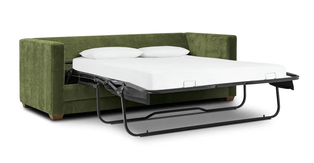 A fortress of comfort by day, a dreamy haven for guests by night. Crafted with a high-grade pull-out bed frame and kiln-dried wood, it's a sanctuary of quality. High-density foam, feather down toppers, and Pirelli webbing deliver luxury. Topped with a memory foam mattress for the ultimate in coziness. With loose, non-reversible cushions and chic walnut legs, it's not just a sofa; it's an invitation to indulge. Be the host with the most – because your guests deserve the royal treatment, even in their dreams.