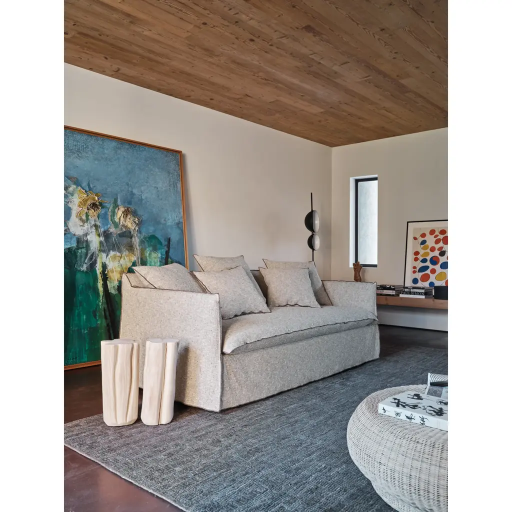 Elevate your living space with the sophisticated and exclusive Gervasoni's Ghost Natural White Lino Sofa Bed. Designed with a lightweight frame and clean, essential lines, this sofa bed combines comfort, aesthetics, and practicality. The removable cover with elegant visible stitching allows for effortless transformation from an elegant to a more relaxed, informal look in no time.