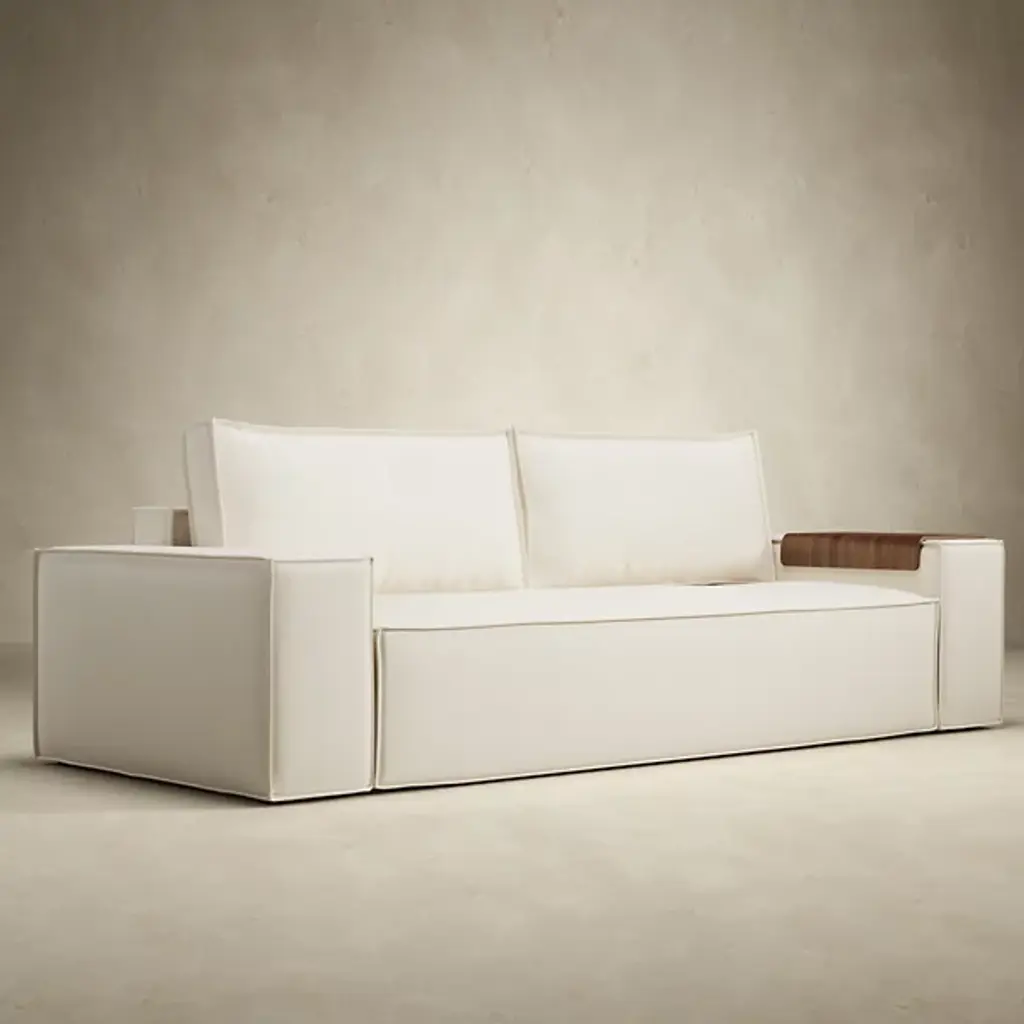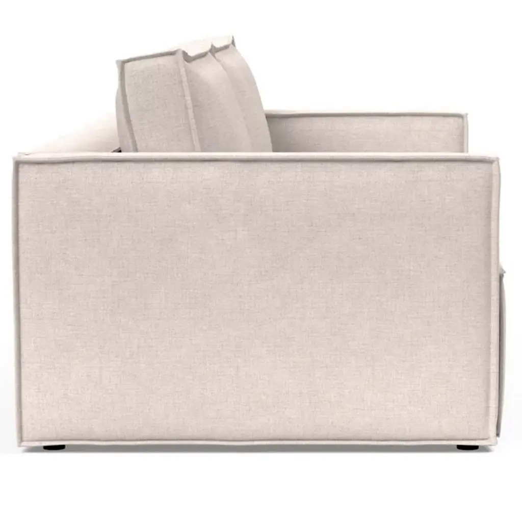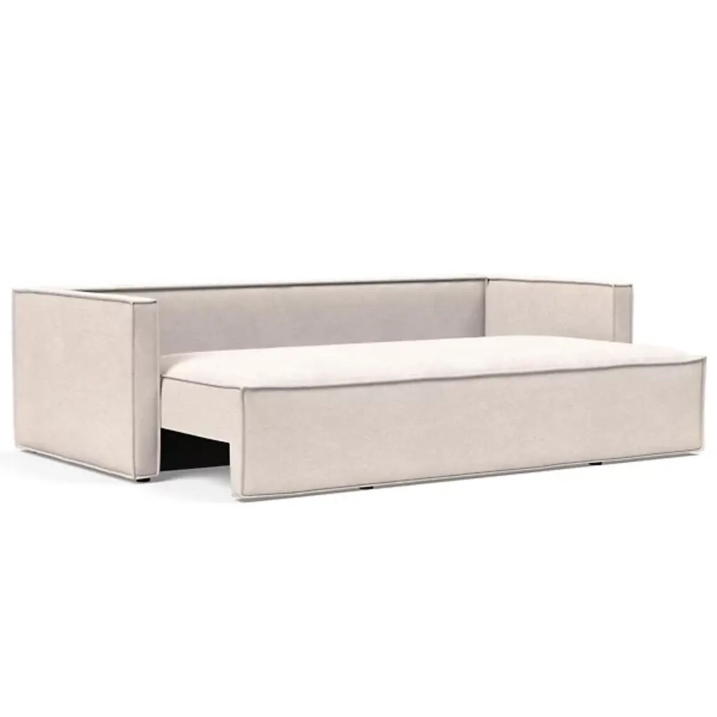 The Newilla Sofa Bed with Arm Rests from Innovation Living brings both comfort and storage to modern living spaces. Designed by Per Weiss and made in Denmark, this piece features polyester upholstery, fiberfill padding, steel legs, and a lift-out seat that can easily transform into a bed. This sofa also comes with cushions, a bedding box inside, and a detachable, washable cover with finely-stitched seams, making it a stylish, versatile solution to one’s lounging needs.