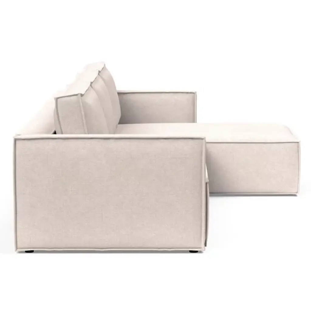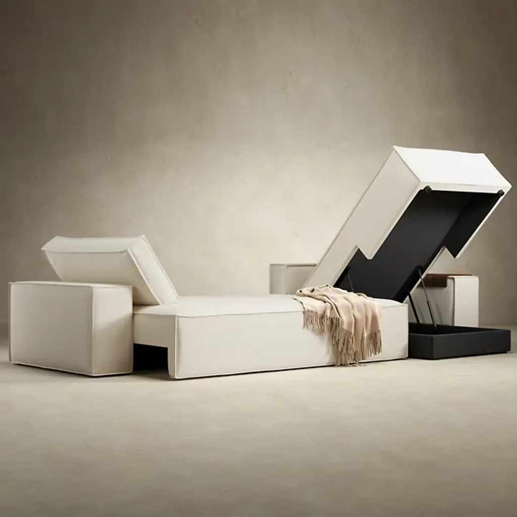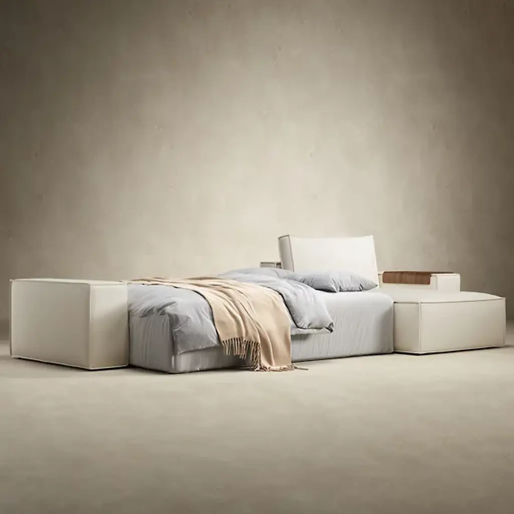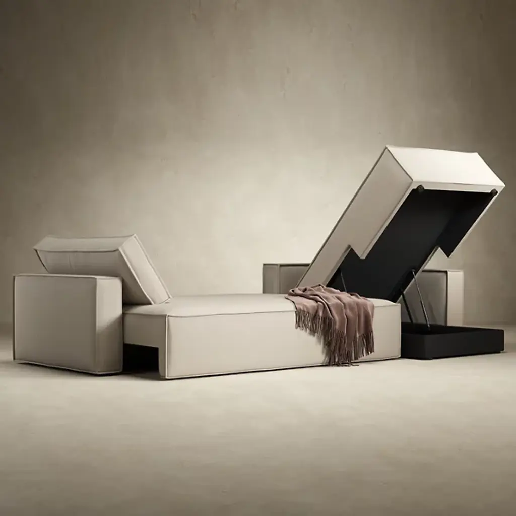 The Newilla Sofa Bed with Lounger from Innovation Living unites comfort, storage, and refined Danish design. Created by Per Weiss, this multifunctional piece includes a lift-up lounger that reveals hidden storage for bedding or daily essentials. The seat easily unfolds into a spacious bed, while fiber-filled cushions and soft polyester upholstery provide plush comfort. Finished with sturdy steel legs and a removable, washable cover with fine seams, this piece is a practical, yet stylish additional to modern settings.