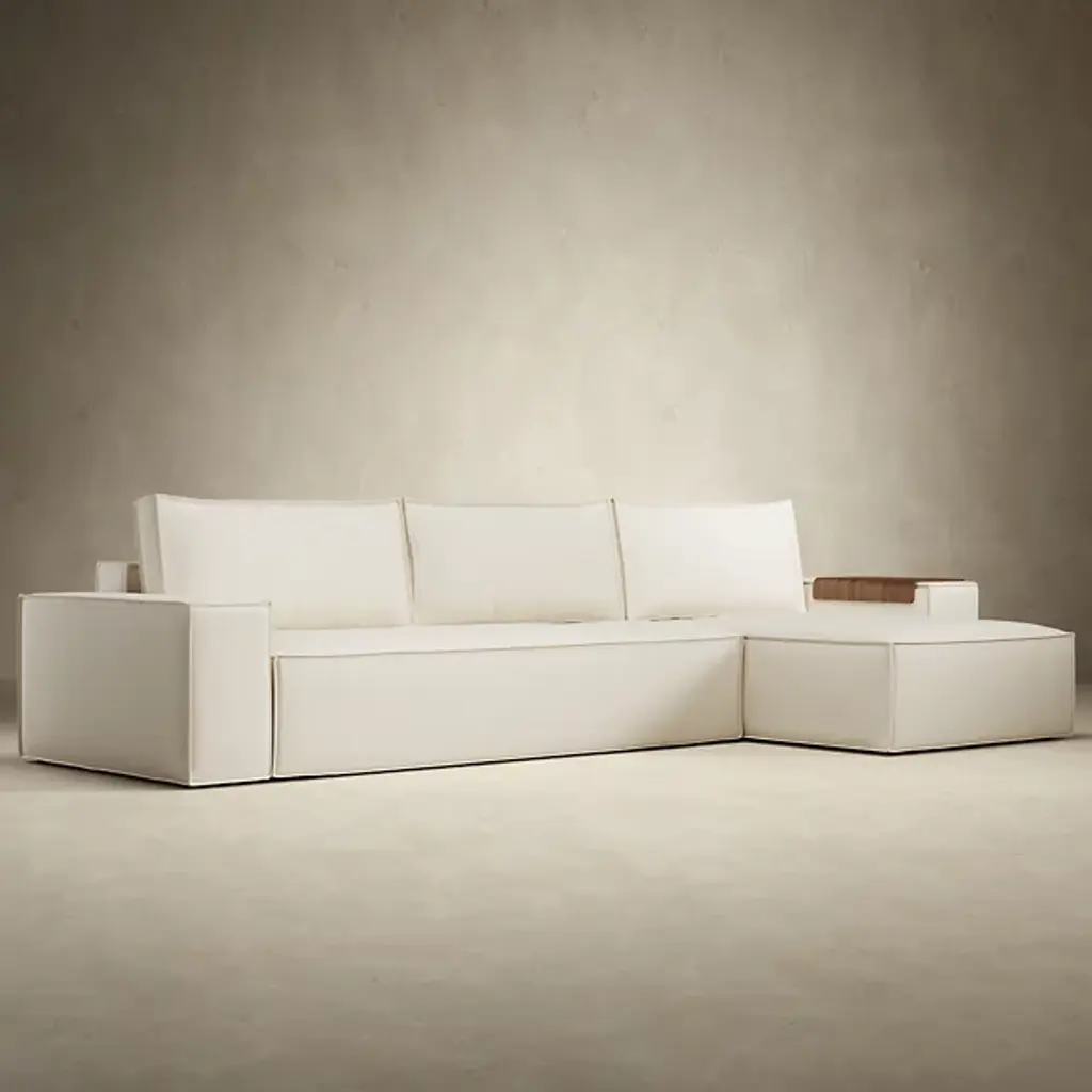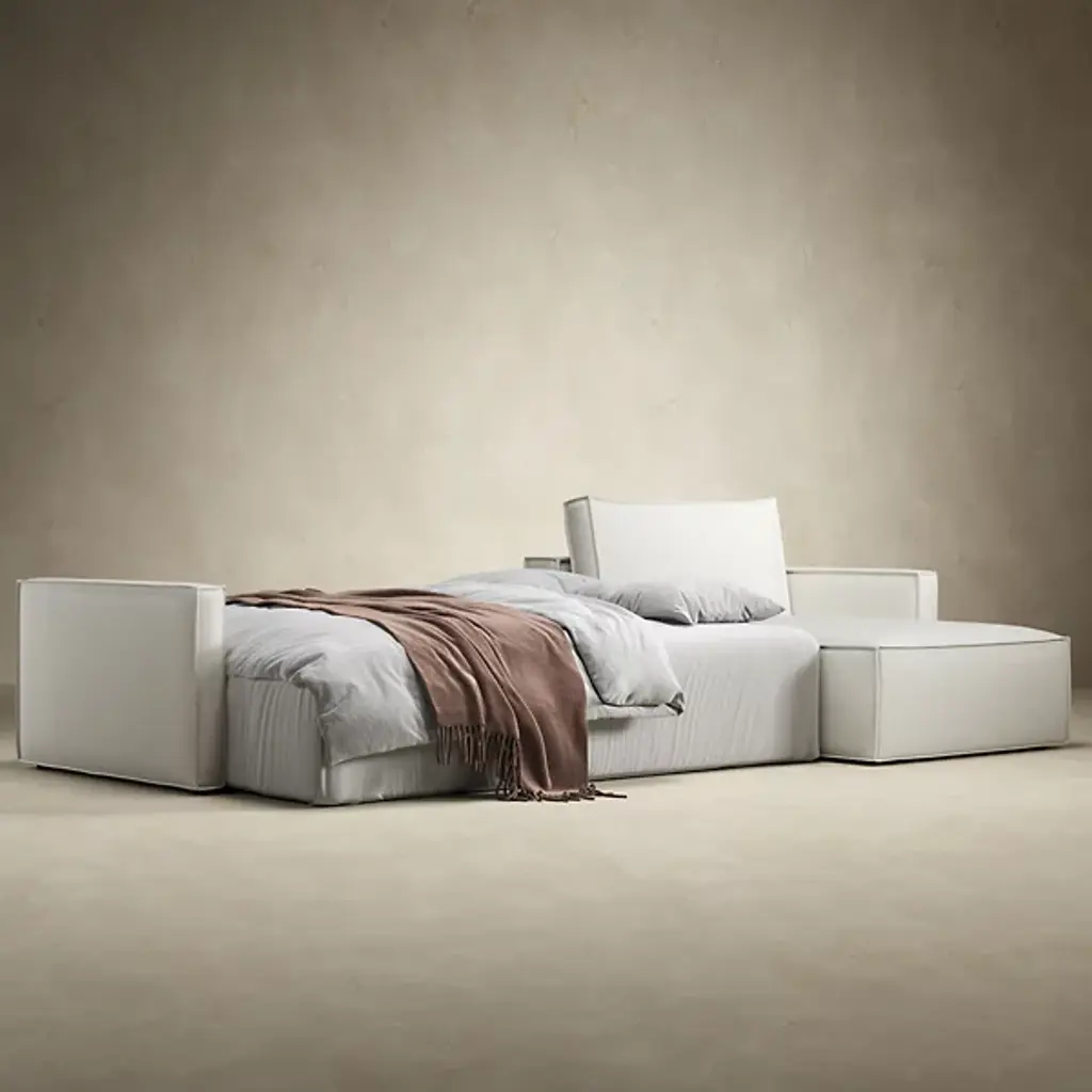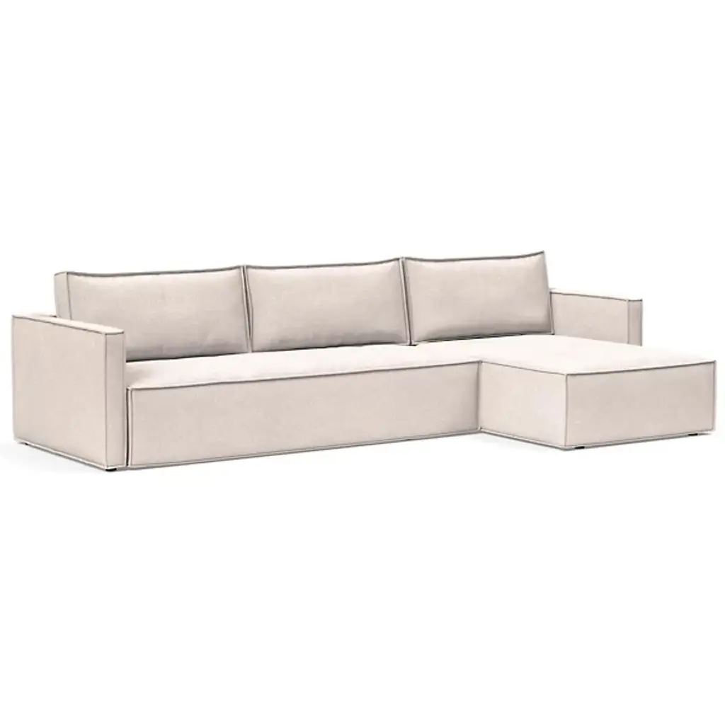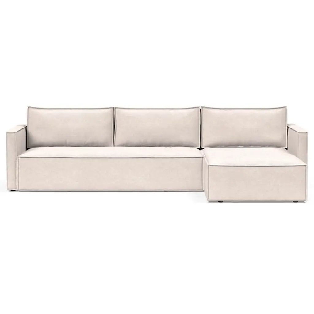 The Newilla Sofa Bed with Lounger from Innovation Living unites comfort, storage, and refined Danish design. Created by Per Weiss, this multifunctional piece includes a lift-up lounger that reveals hidden storage for bedding or daily essentials. The seat easily unfolds into a spacious bed, while fiber-filled cushions and soft polyester upholstery provide plush comfort. Finished with sturdy steel legs and a removable, washable cover with fine seams, this piece is a practical, yet stylish additional to modern settings.